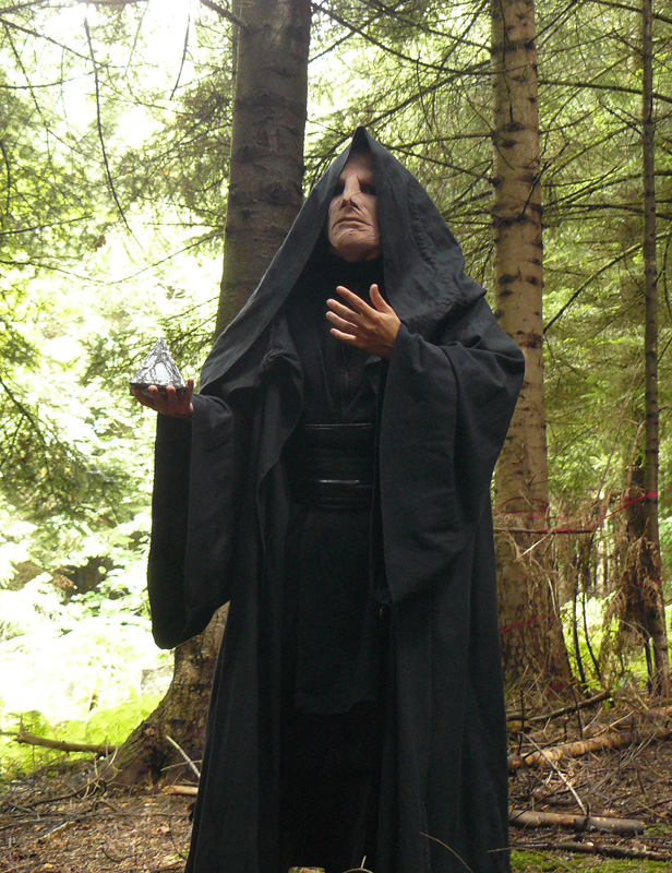 Mais ça tombe bien que tu en parles, je vais en profiter pour tenter d’effacer un peu un mythe qui me colle à la peau sans le vouloir : mon costume ne représente pas du tout l’Empereur ! Les vrais fans l’auront sûrement remarqué, ou bien auront cru que je me suis essayé à une pâle imitation, mais il ne s’agit que d’un costume d’inspiration libre représentant un Seigneur Noir des Sith fictif, rien de plus ! J’avoue que mon masque peut ressembler soit à Fantomas, soit à l’Empereur avec la capuche, mais ce n’est pas voulu !