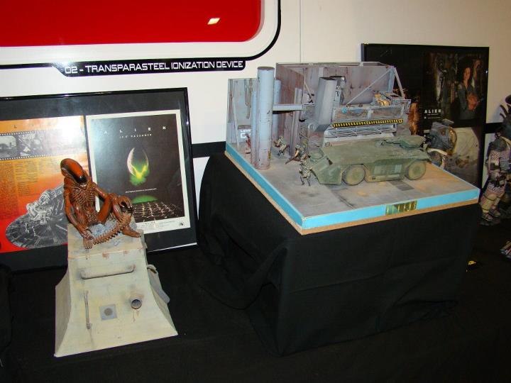 Il faut dire que les expositions de cette année étaient de très haut niveau. Du côté des amateurs de la brique, aux côtés du Jawa et du Yoda taille 1, vous pouviez admirer un superbe diorama Heroic Fantasy de l’association FreeLug et plusieurs vitrines Lego Marvel ou Lego StarWars. Au centre de l’espace Chambon, la superbe maquette de l’Etoile Noire de ArtMovieFan côtoyait la surprise habituelle des toulousains de StarFiction, la cabine du Doctor Who ! Bien sûr, il y avait aussi tous le coin réservé à la quadrilogie Aliens. Tout d’abord les peintures de notre peintre maison Greg MASSONNEAU, mais aussi les superbes maquettes et reproductions de l’association StudioScaleFederation et que dire de l’extraordinaire Alien Echelle I et son oeuf que nous ont gentiment amené Kennocha BAUD et Julien DUMONT de l’Atelier dbFx ! Après le Neytiri de l’an passé, ils ont une nouvelle fois frappé un grand coup !
