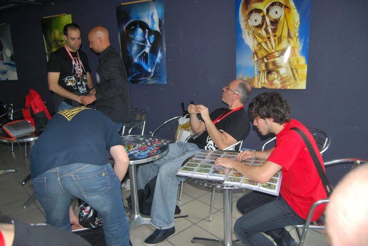 Le « pôle artistique » était quant à lui très fortement garni cette année puisque, aux côtés de Thierry MORNET, nous recevions les dessinateurs Stéphane CRETY et Julien HUGONNARD-BERT, Christophe HENIN et Thierry « Yodablog » VIVIEN. Et lorsqu’on voit les files d’attentes pour les dédicaces qui n’ont pas désemplies du week-end, le moins que l’on puisse dire est que depuis 2009 et la venue de Davide Fabbri, ce pôle dessinateurs a pris une réelle importance auprès des visiteurs ! Pour vous donner une idée, c’est plus de 250 dédicaces qui ont été faites dans le week-end par les dessinateurs ! Dessinateurs auxquels on peut ajouter Julien DUMONT, toujours prompt à faire un petit crobard à qui le demande. Bref, de quoi repartir avec de bonnes crampes au poignet ! Jugez plutôt :