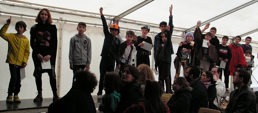 Du côté des enfants, pas facile pour le jury de mettre (un peu) de côté l’effet « Trop mignon ! » de certains des participants pour se concentrer sur les costumes… Heureusement, les organisateurs (Les animateurs Renaud et Loïc avec l’aide de Fabien et François) ont prévu un prix spécial « coup de cœur » du jury pour leur permettre de récompenser les plus trognons. A ce petit jeu, du haut de ses quatre mois l’ewok Mahé partait forcément avec un peu d’avance. Mais notre jury est tendre et n’est pas non plus resté insensible aux trio de sœurs Fanny, Nina et Leonie qui portaient un trio de costumes divers mais de grande qualité : Padme robe de parade, Hera et une Elfe. Prix spécial du jury elles aussi !