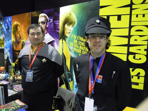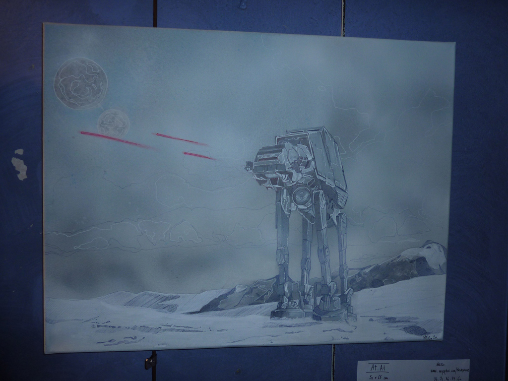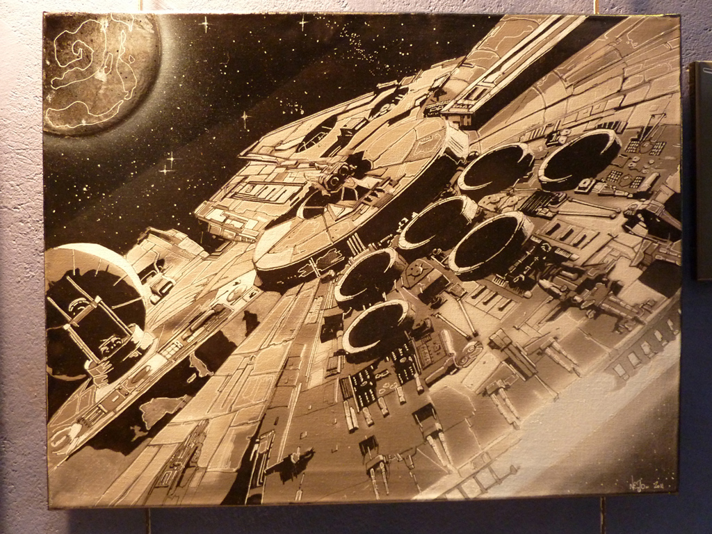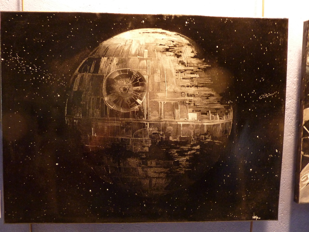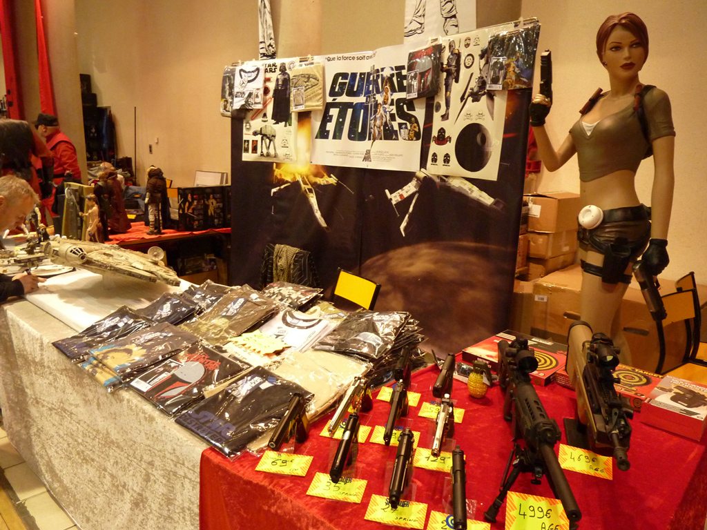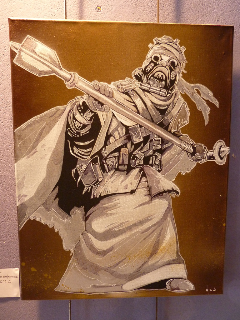 Côté expo, là aussi il y avait de quoi faire ! D’abord vous pouviez admirer quelques peintures de l’artiste Nejo dans le couloir du salon et vous rendre compte du talent de ce jeune peintre ! Ensuite, le stand qui a fait la plus forte impression est certainement celui de nos amis et partenaires de chez MintinBox.net avec l’exposition de onze casques Master Replicas, tous échelle 1 ! De quoi faire saliver bon nombre de collectionneurs. Et que dire des prototypes des statues de la série Elite gentiment prêtés par Attakus ? Si on ajoute le Convention Book de Michel Verpooten et les goodies de chez AbyStyle, le résultat était un superbe stand.