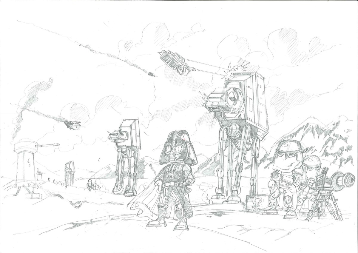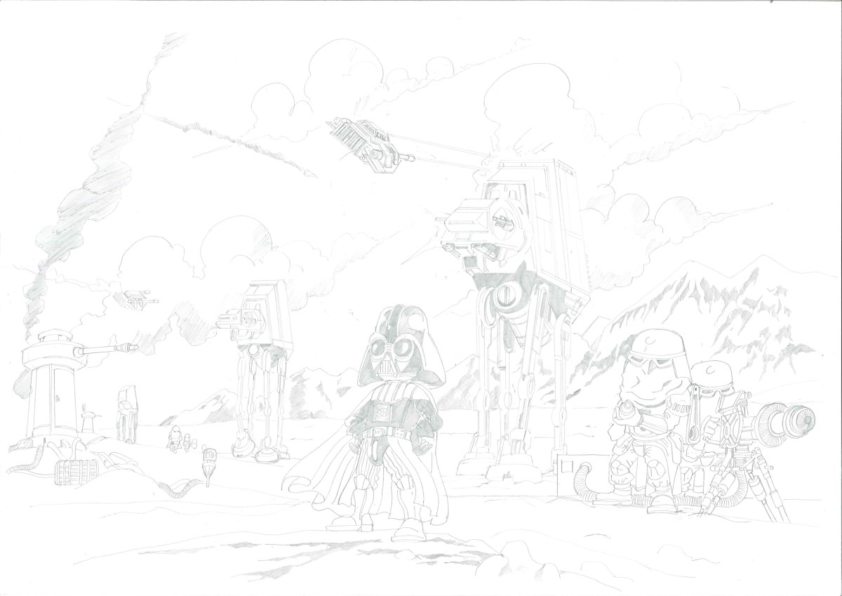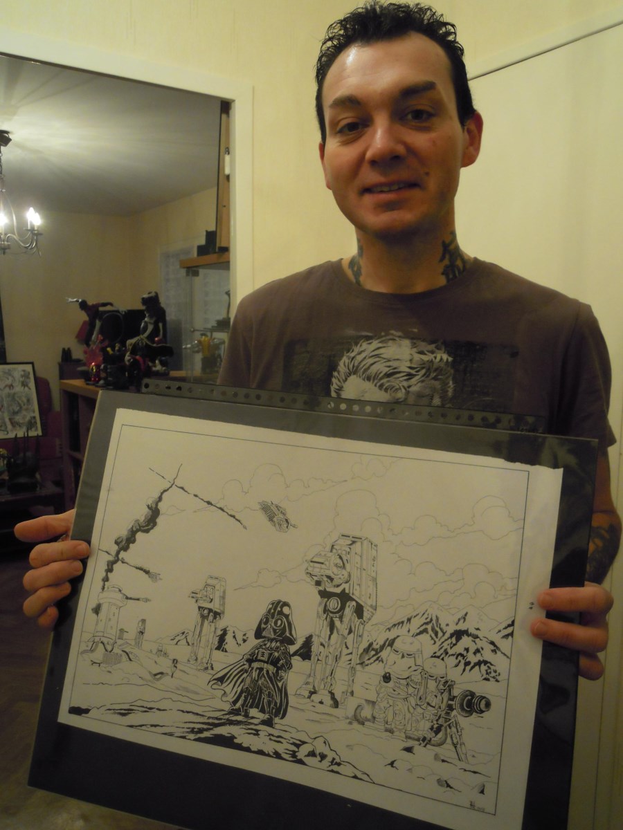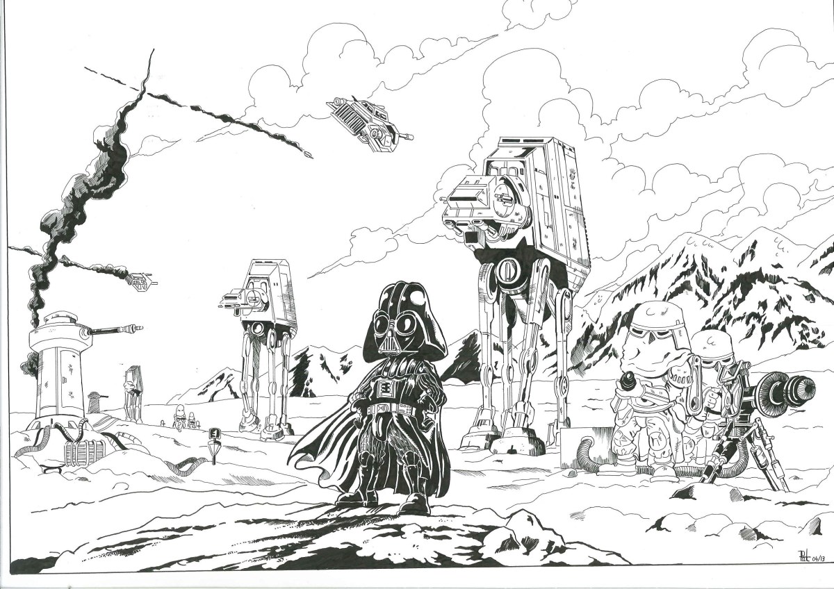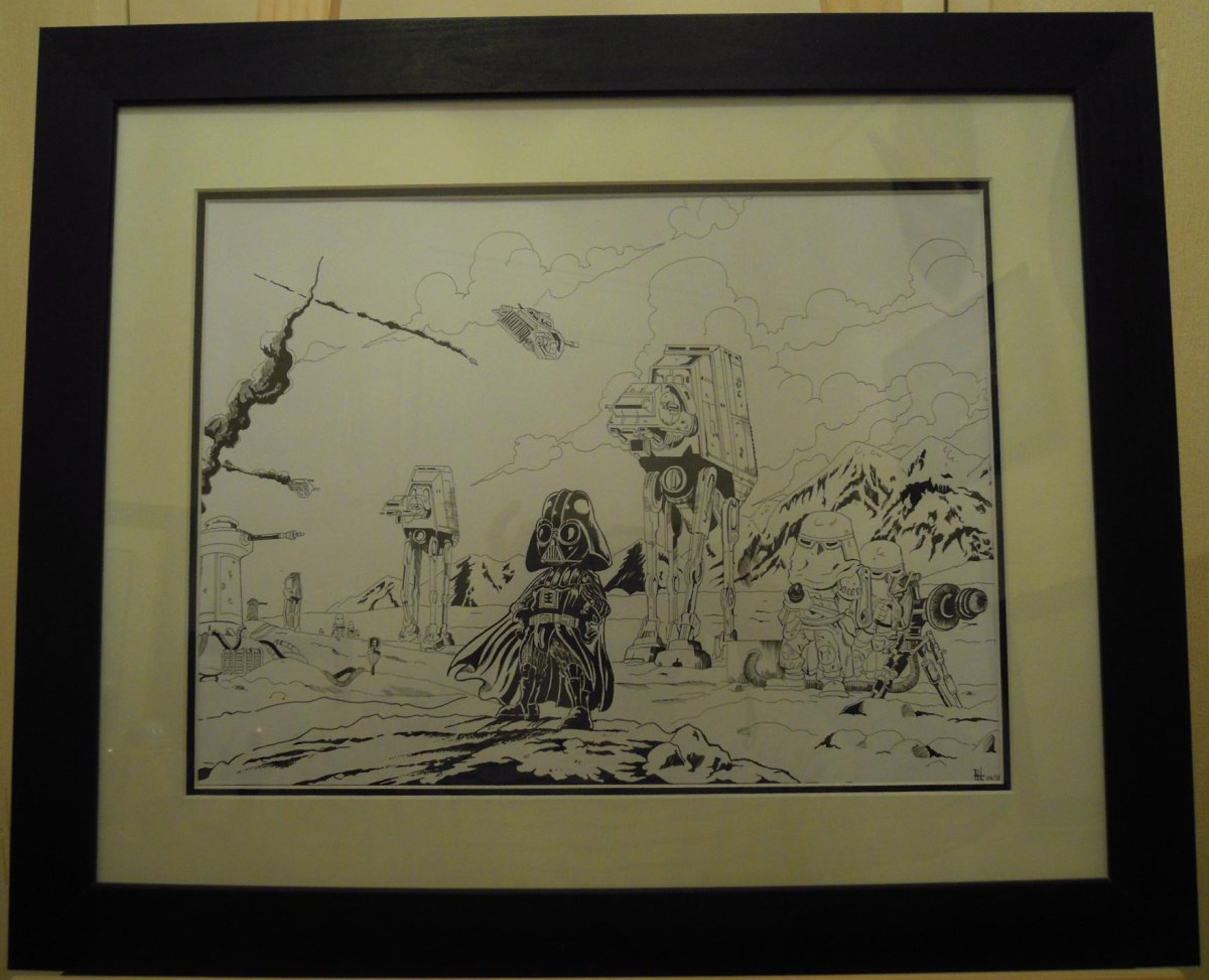La deuxième illustration a été réalisée par l’autre illustrateur roannais présent sur la convention, Patrick Biesse. Au menu, toujours Vador bien évidemment, mais cette fois-ci menant les Forces Impériales sur Hoth ! Comme l’illustration de Christophe Hénin, celle de Patrick Biesse sera également disponible sous forme de carte 20 x 15 cm.
