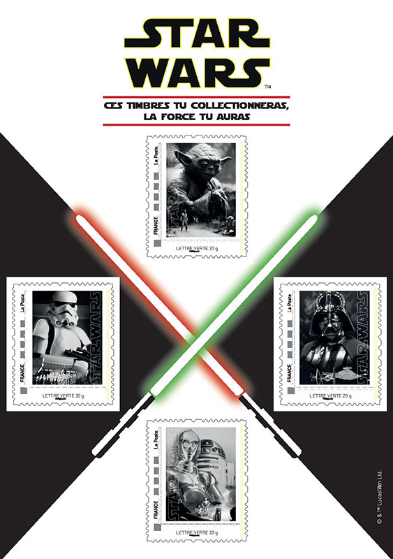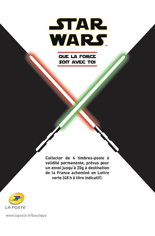 Dès le 16 novembre prochain la Force sera avec la Poste française ! C’est l’occasion rêvée pour ajouter une date à notre « Calendrier de l’Avent d’Avant la Sortie du Réveil de la Force » ! Notre quatrième grand concours va permettre à non pas un mais bien deux gagnants de recevoir la collection complète Star Wars La Poste !