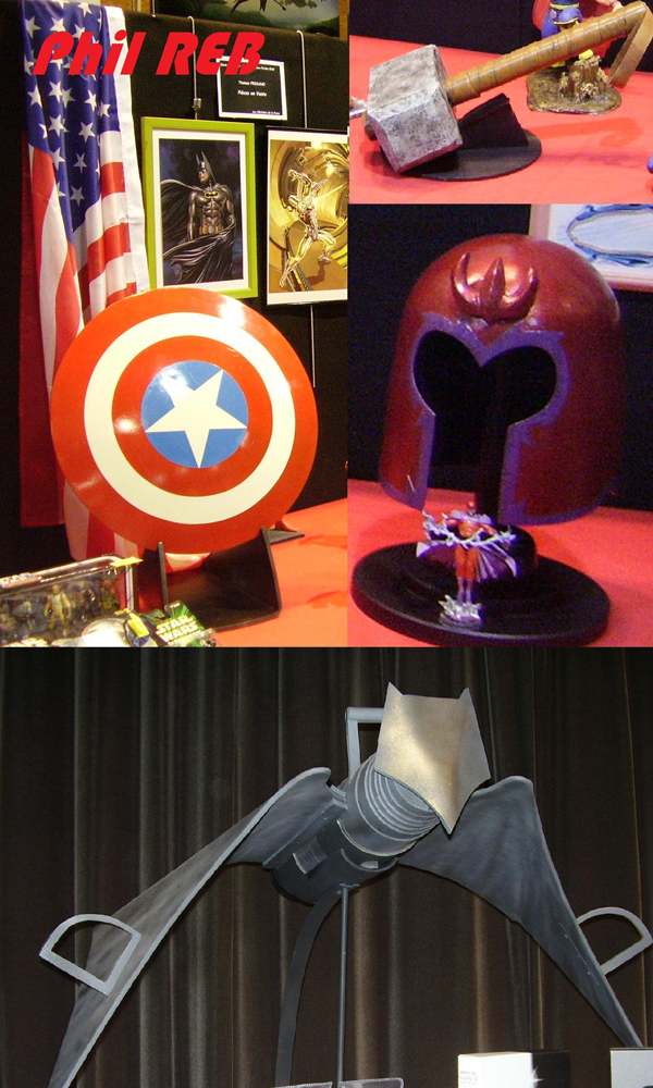 Expositions de résines de collection et figurines mais également de réalisations personnelles uniques de notre Philippe Reb (les 2 boucliers de Captain America, Aile du Bouffon Vert, Green Lantern, …),