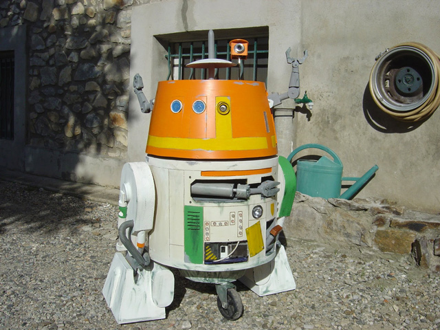 Mais ce Droideka ne sera pas seul à faire le trajet jusqu’à l’Espace Chambon, puisque le couple ont également fabriqué plusieurs Pit Droid, un Battle Droid et son Stap mais aussi C3PO, R2-D2, Chopper ainsi que …. BB8, le petit robot rond de l’Episode VII qui a fait une entrée remarquée sur la scène principale à Celebration Anaheim il y a quelques jours !