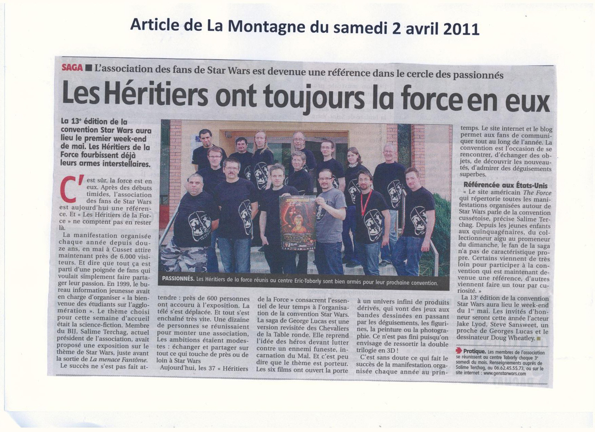 Il y a un mois, le journal local La Montagne avait déjà commencé à parler de la prochaine édition de Générations Star Wars et SF dans un petit encart dont nous vous rapportions la publication. Cette fois c’est tout un article sur l’association et son activité qui nous ait dédié avec, en prime, la photo des membres dans leur toute nouvelle tenu !