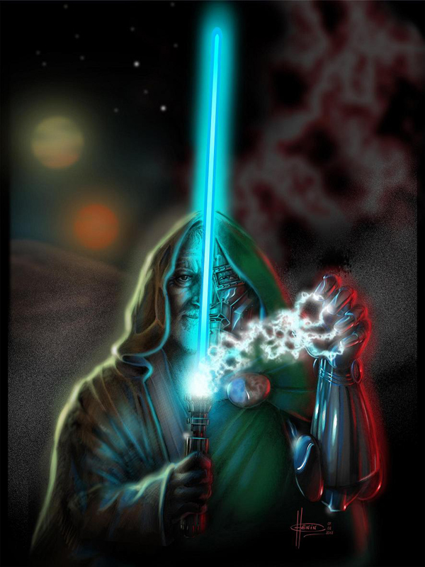 Tout d’abord Christophe Henin, vous proposera la deuxième carte de sa série « Choisir ton camp il faudra.. » avec cette fois ci ObiWan et Dr Fatalis. Une carte qui rentre notamment dans le thème de notre concours fan art : les croos-over.