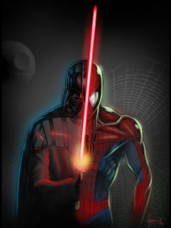 Si vous étiez avec nous au salon de Roanne en décembre dernier, vous avez pu découvrir une nouvelle tradition que nous avons voulu mettre en place : les cartes exclusives. En effet, Christophe Henin, qui était notre invité vous proposait de repartir avec une carte postale (format 10×15 cm) avec un visuel créé spécialement pour l’évènement mettant en scène Dark Vador et Spiderman.