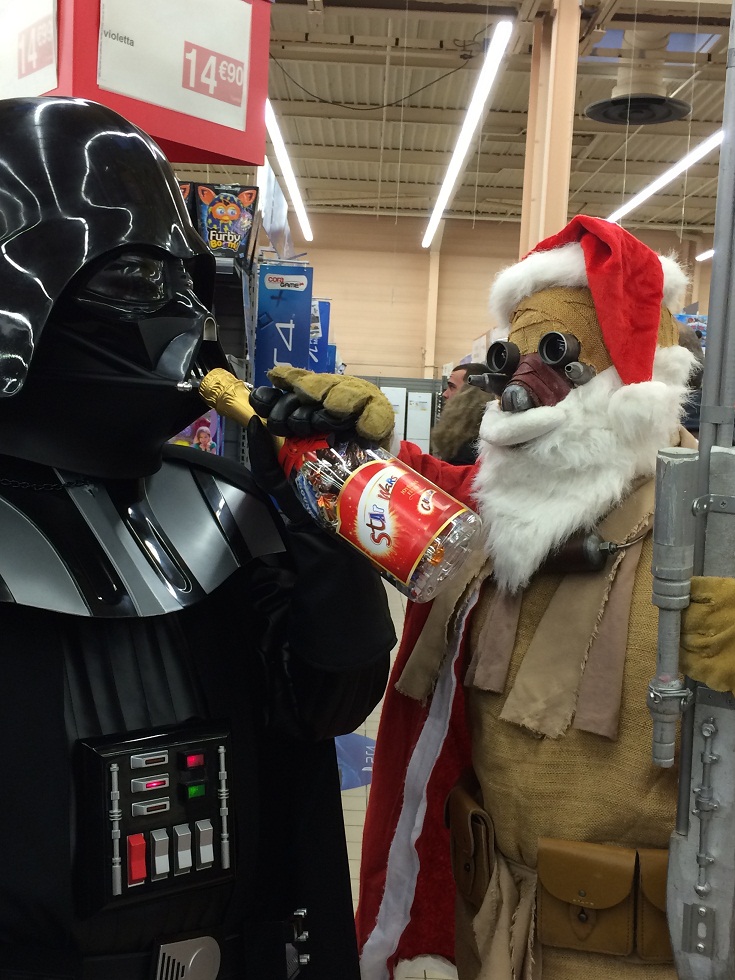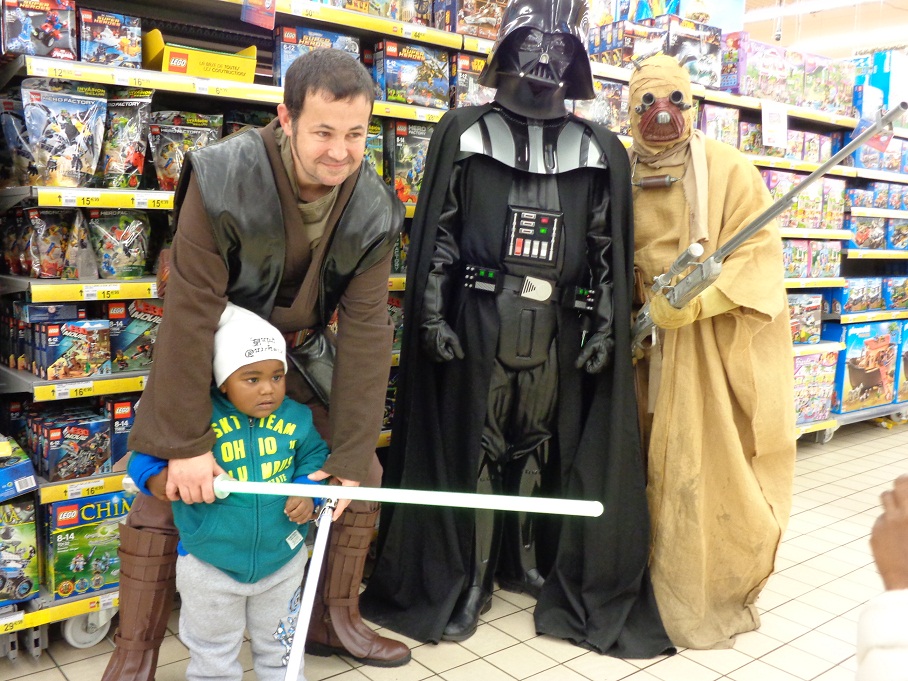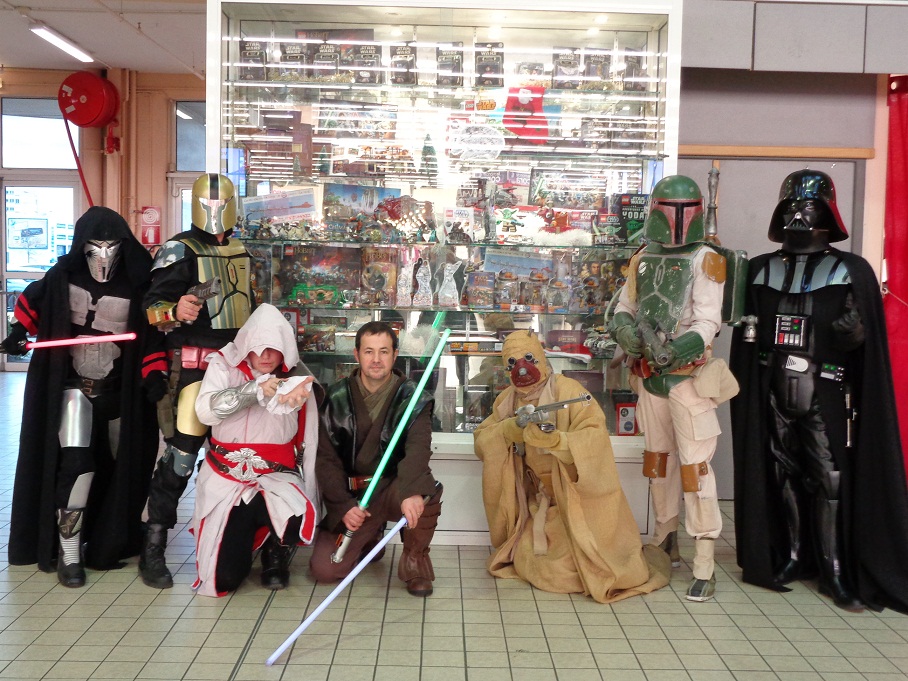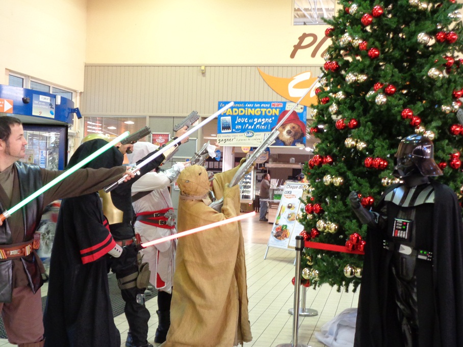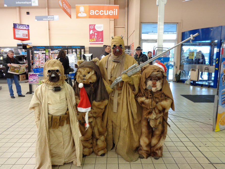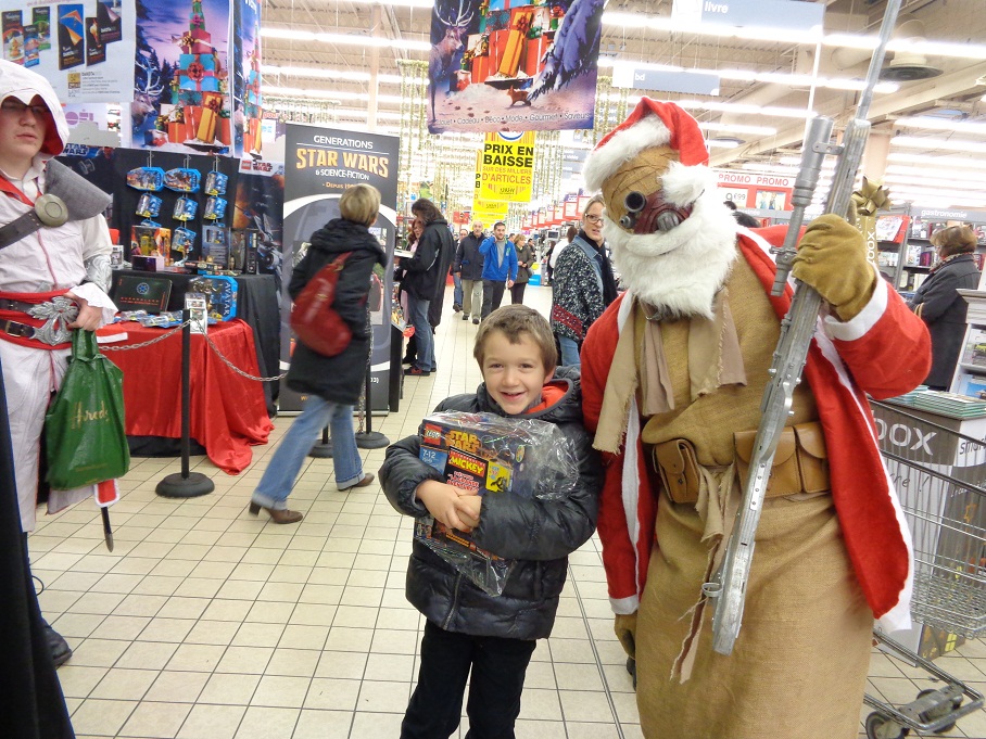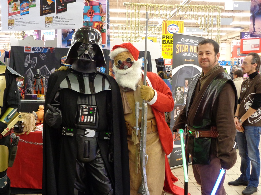 Au programme, deux expositions, dont une qui restera sur place jusqu’au 27 décembre, et la présence costumée de pas moins de 10 Héritiers et Padawans ! Évidemment, l’occasion était à saisir pour des retrouvailles chaleureuses entre le Seigneur Vador et Petit Papa Tusken que la magie de Noël seule sait réconcilier, pour un instant tout au moins… En tout cas, l’amitié et la joie étaient au rendez-vous, les nombreux visiteurs ne s’y sont pas trompés.