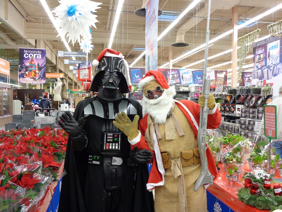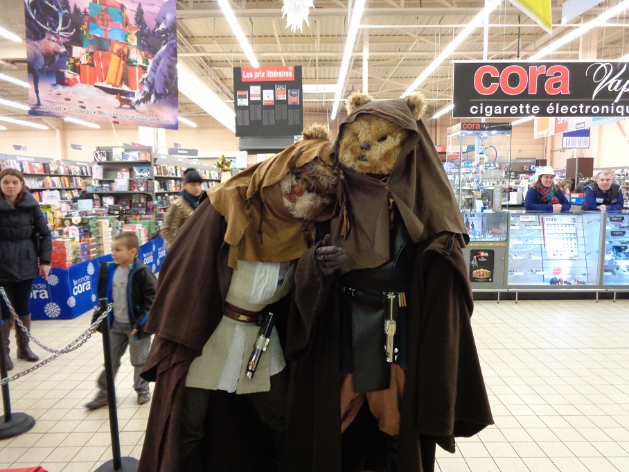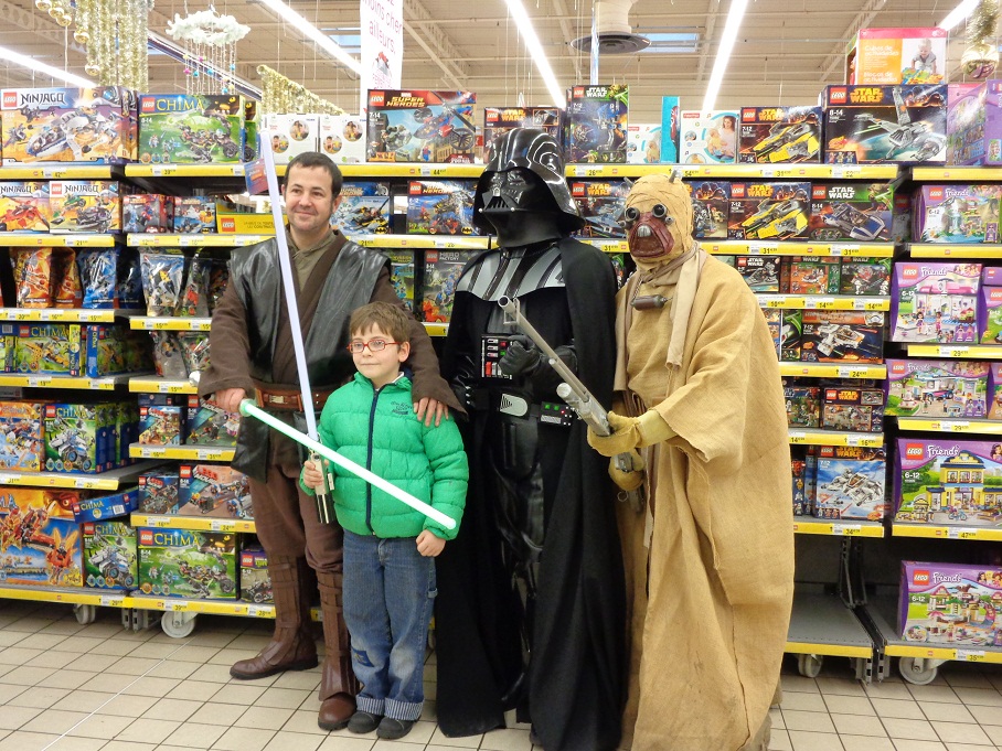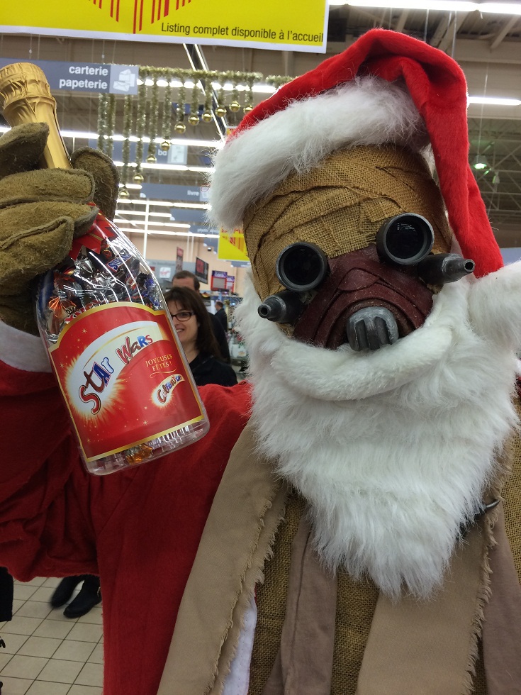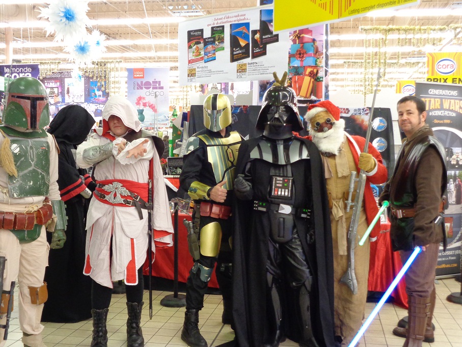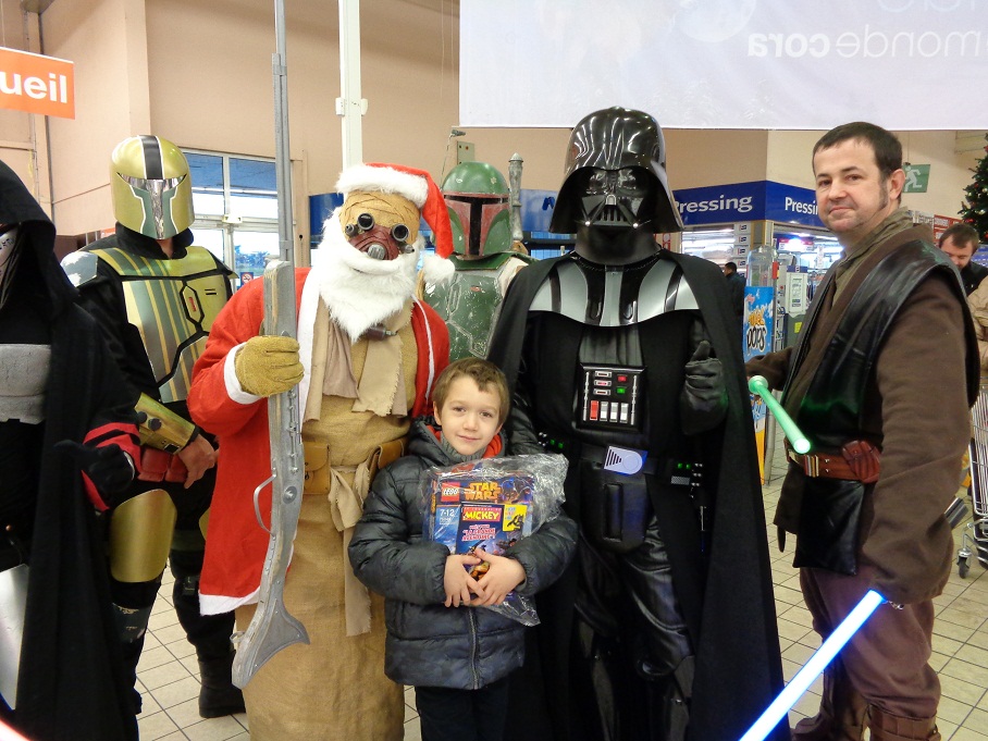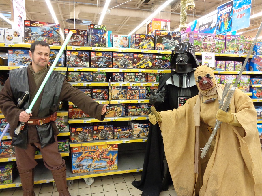 Au programme, deux expositions, dont une qui restera sur place jusqu’au 27 décembre, et la présence costumée de pas moins de 10 Héritiers et Padawans ! Évidemment, l’occasion était à saisir pour des retrouvailles chaleureuses entre le Seigneur Vador et Petit Papa Tusken que la magie de Noël seule sait réconcilier, pour un instant tout au moins… En tout cas, l’amitié et la joie étaient au rendez-vous, les nombreux visiteurs ne s’y sont pas trompés.