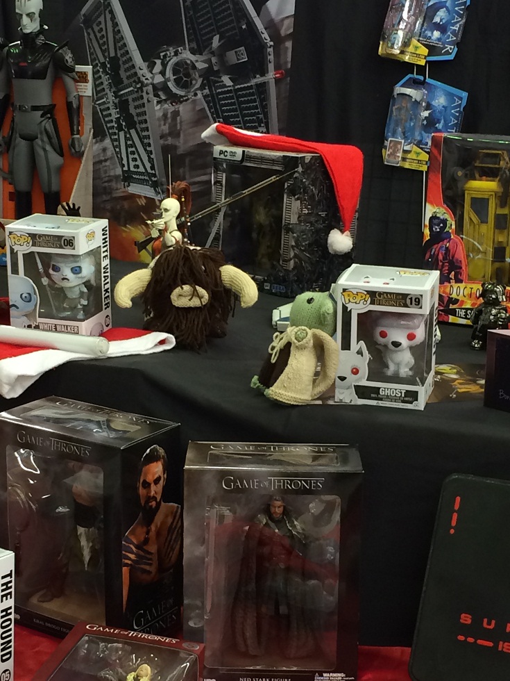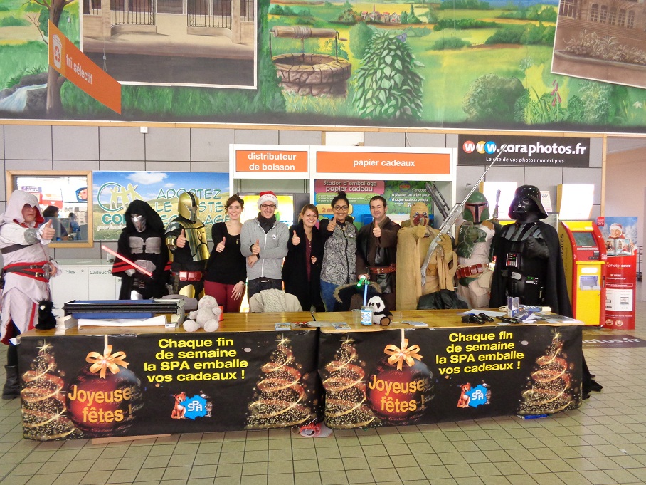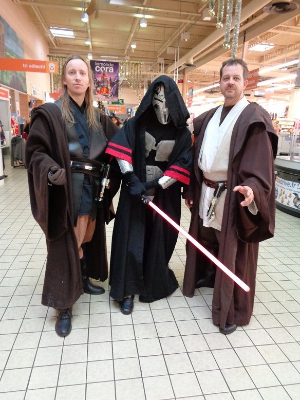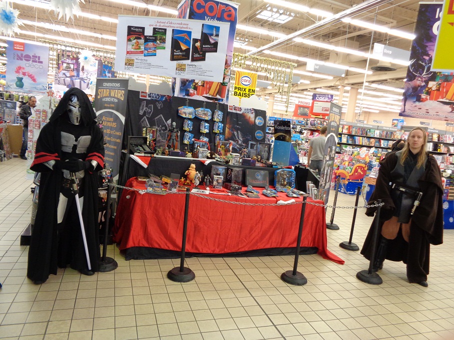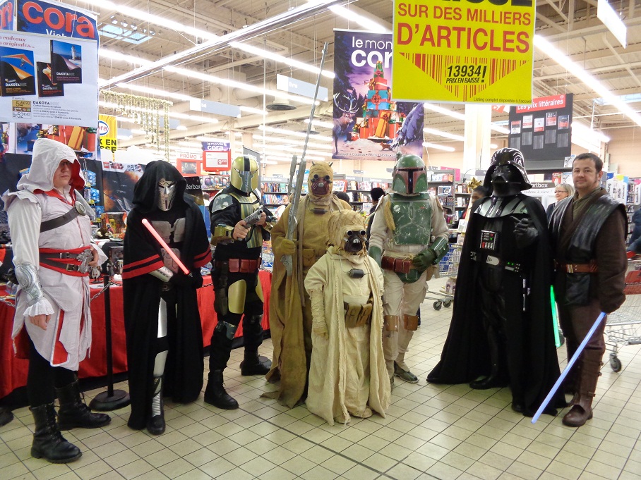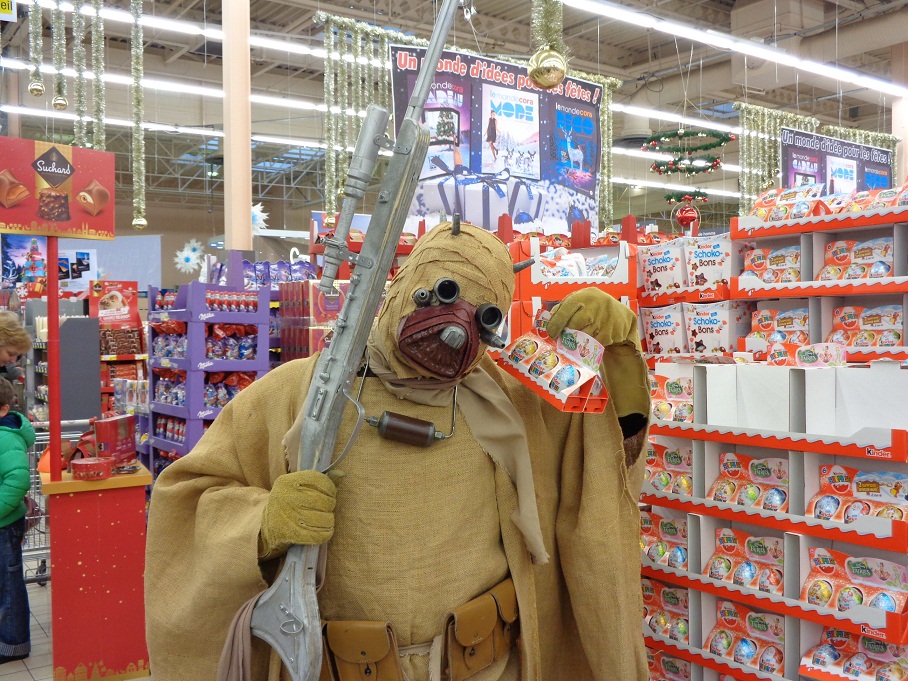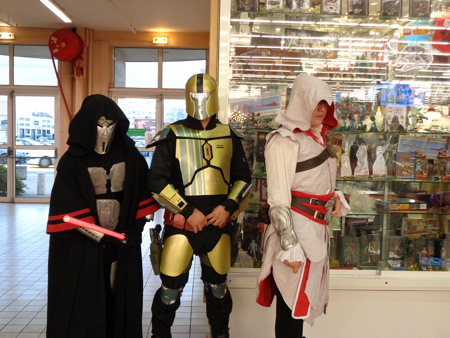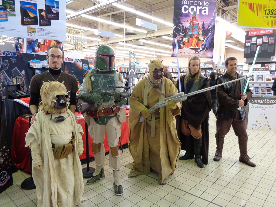 Au programme, deux expositions, dont une qui restera sur place jusqu’au 27 décembre, et la présence costumée de pas moins de 10 Héritiers et Padawans ! Évidemment, l’occasion était à saisir pour des retrouvailles chaleureuses entre le Seigneur Vador et Petit Papa Tusken que la magie de Noël seule sait réconcilier, pour un instant tout au moins… En tout cas, l’amitié et la joie étaient au rendez-vous, les nombreux visiteurs ne s’y sont pas trompés.