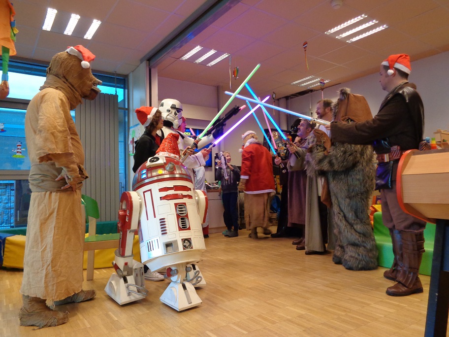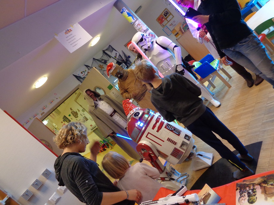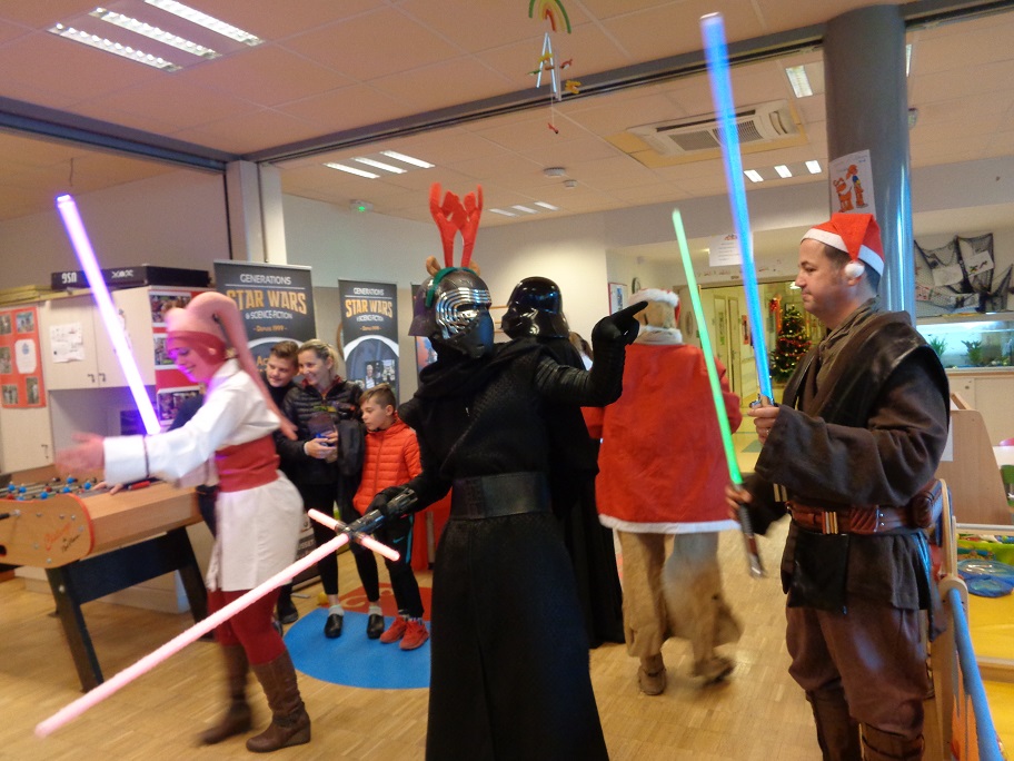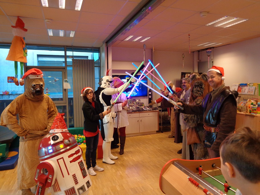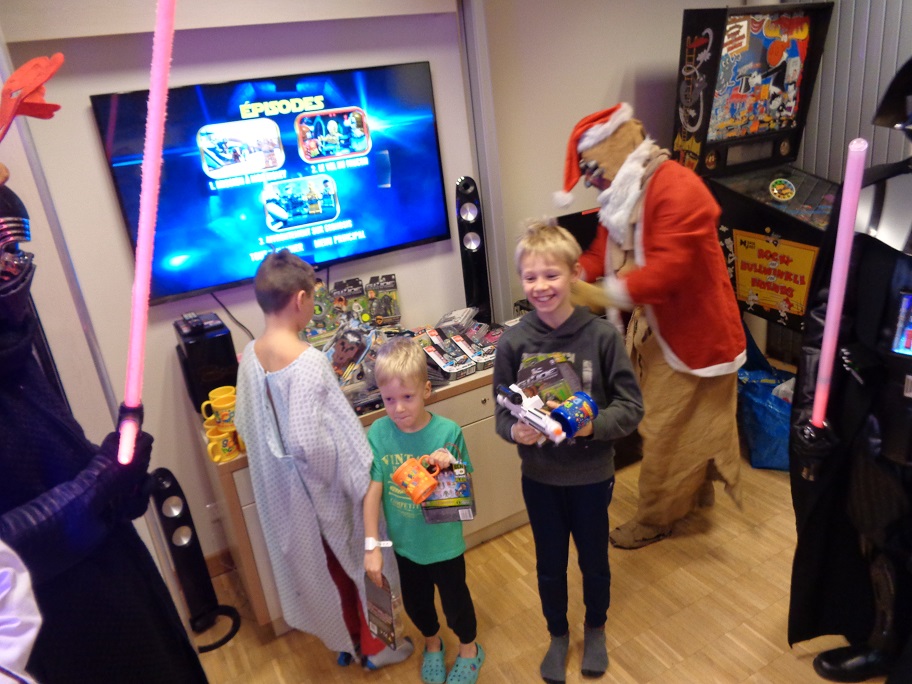 Noël n’est pas que le 25 décembre ! En effet, le samedi 10 décembre dernier, une délégation des Héritiers de la Force s’est rendue au service pédiatrique pour la livraison des cadeaux de Petit Papa Tusken. Au programme, distribution de cadeaux que nous devons à la générosité de plusieurs fans et donateurs, dédicaces offertes par Patrick « Tiny » Biesse et de nombreuses animations qui ont d’ailleurs eu raison de plusieurs Héritiers !