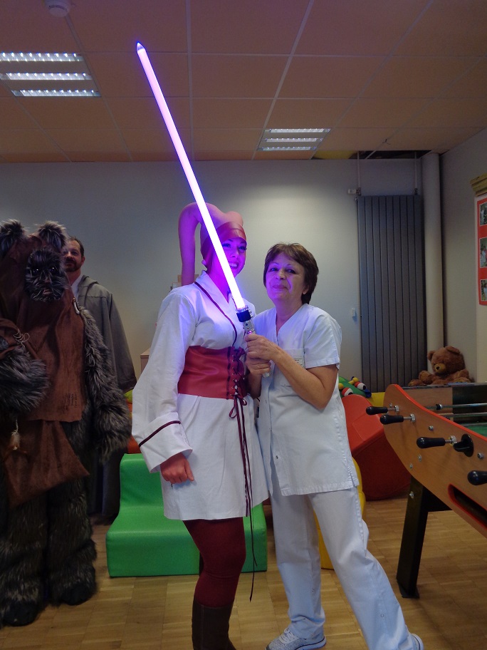 Mais cette nouvelle rencontre pleine de rires fut aussi l’occasion d’échanger avec la cadre responsable du service, Mme Belien-Roseel, au sujet de leur nouveau projet pour lequel Les Héritiers de la Force organiseront une levée de fonds lors de Générations Star Wars et Science-Fiction 2017.