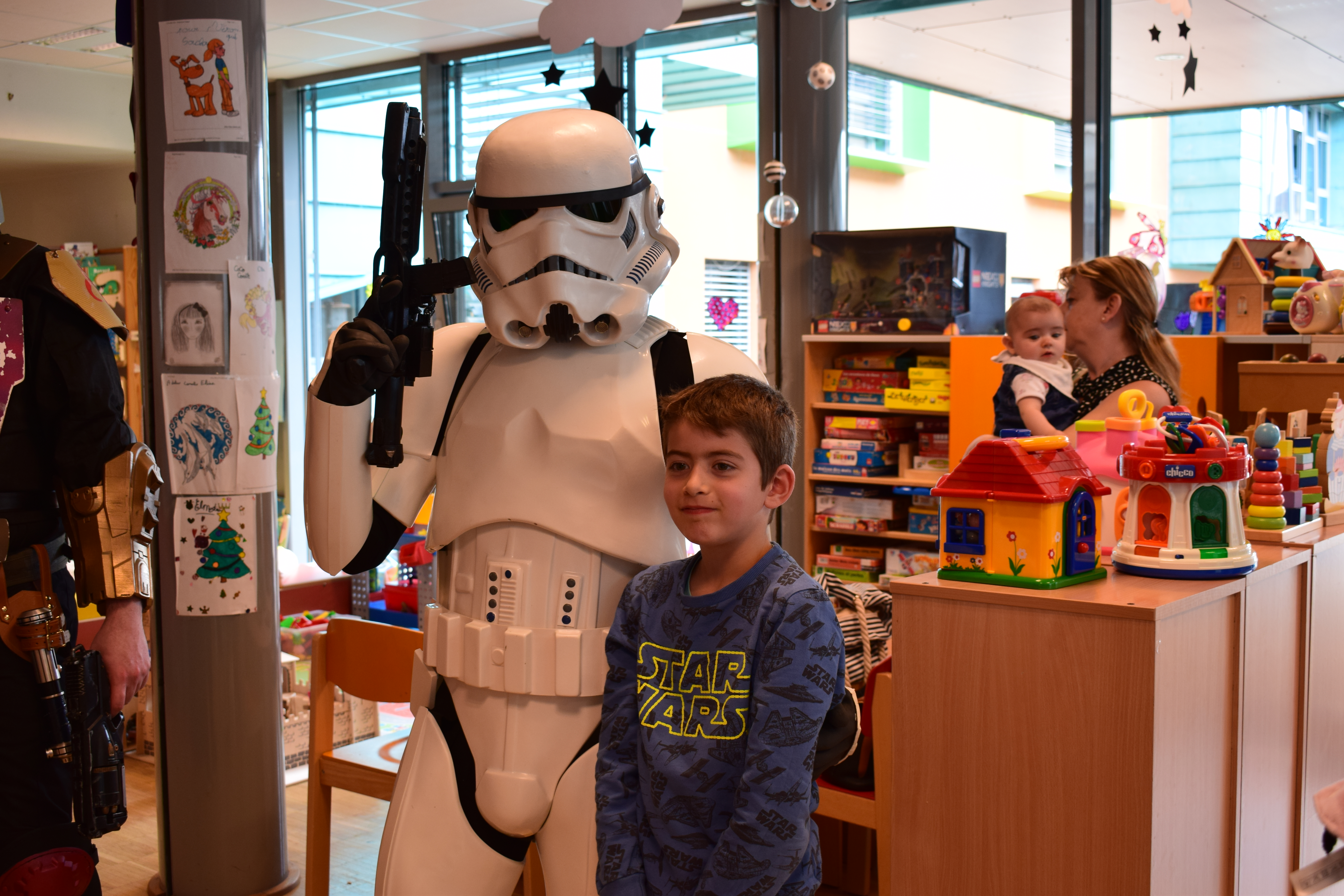 Comme à l’accoutumée, ceux-ci ont ainsi pu rencontrer quelques personnages de la saga et s’amuser avec eux tandis qu’Ashline réalisait des dessins à leur demande. Un après-midi de joie bien loin des tracas de la maladie ! Cette animation a également permis d’offrir aux enfants de nombreux cadeaux venant de généreux donateurs : Les amigurumis de Stéphanie L., des micro Popz (récoltés par Ludovic S. auprès des enfants de l’École du Centre de Loudéac ou donnés par les Héritiers de la Force) ou encore des polybags LEGO© venant d’ Yvan P. et son employeur King Jouet. Une nouvelle fois, un très grand merci à tous les donateurs !