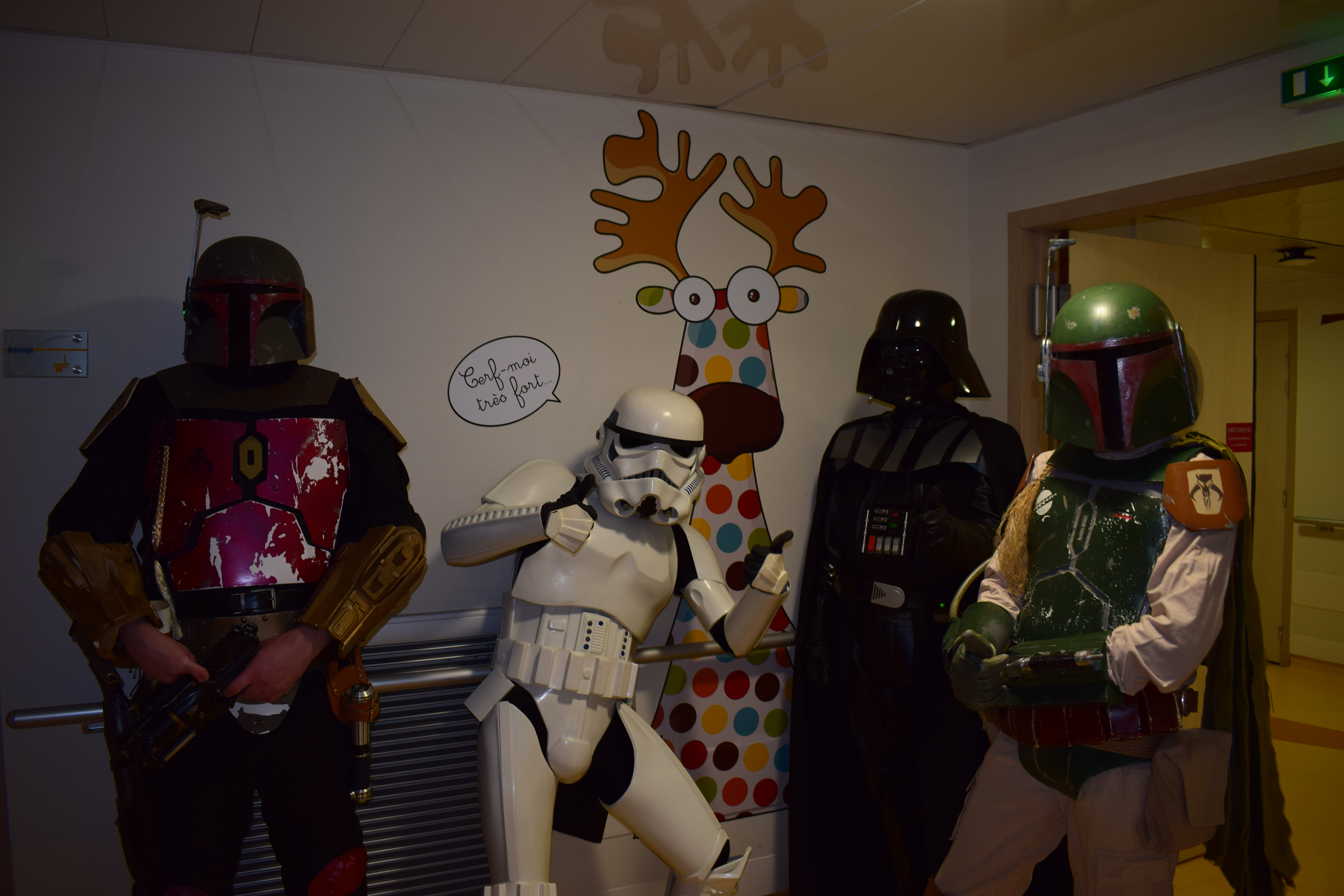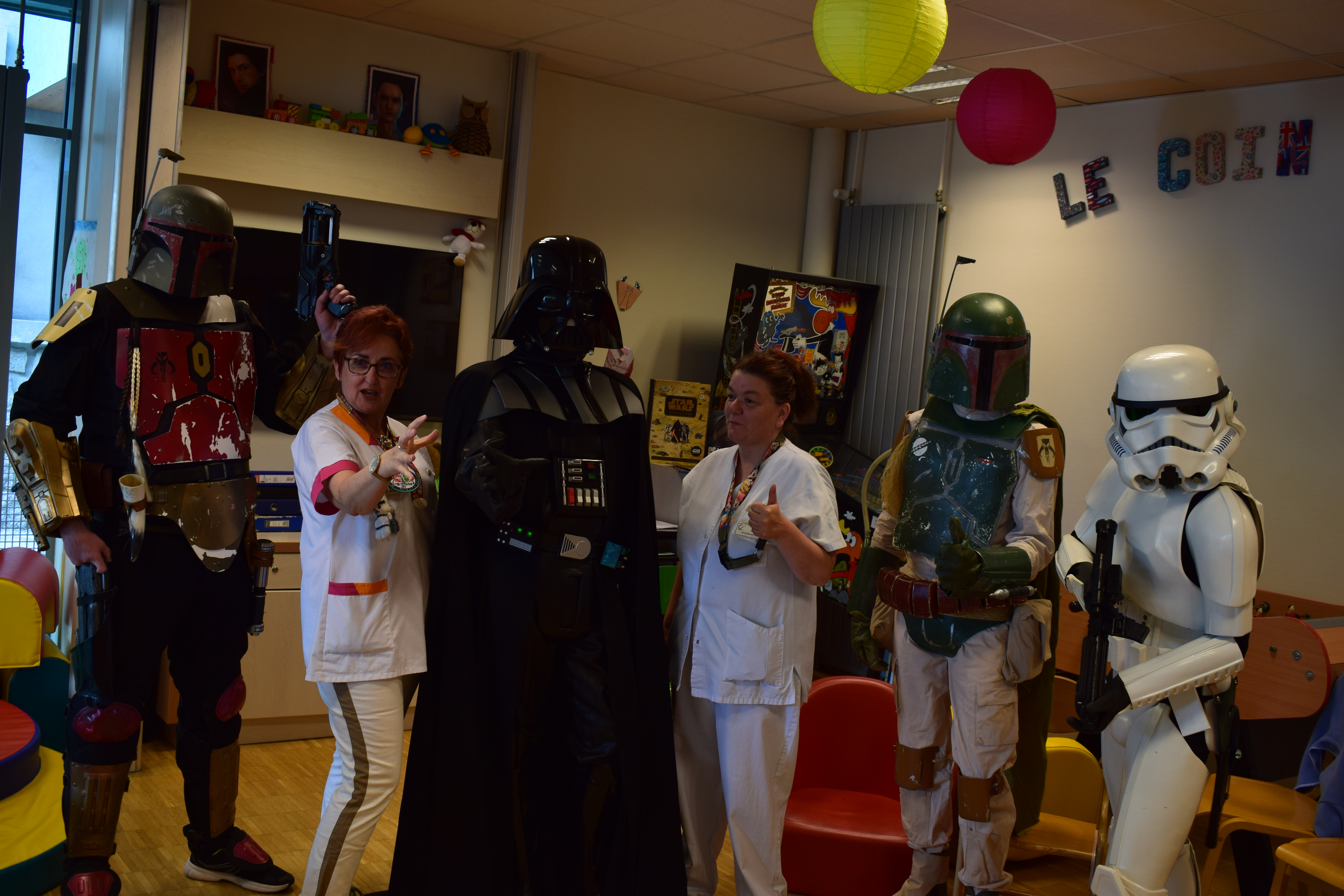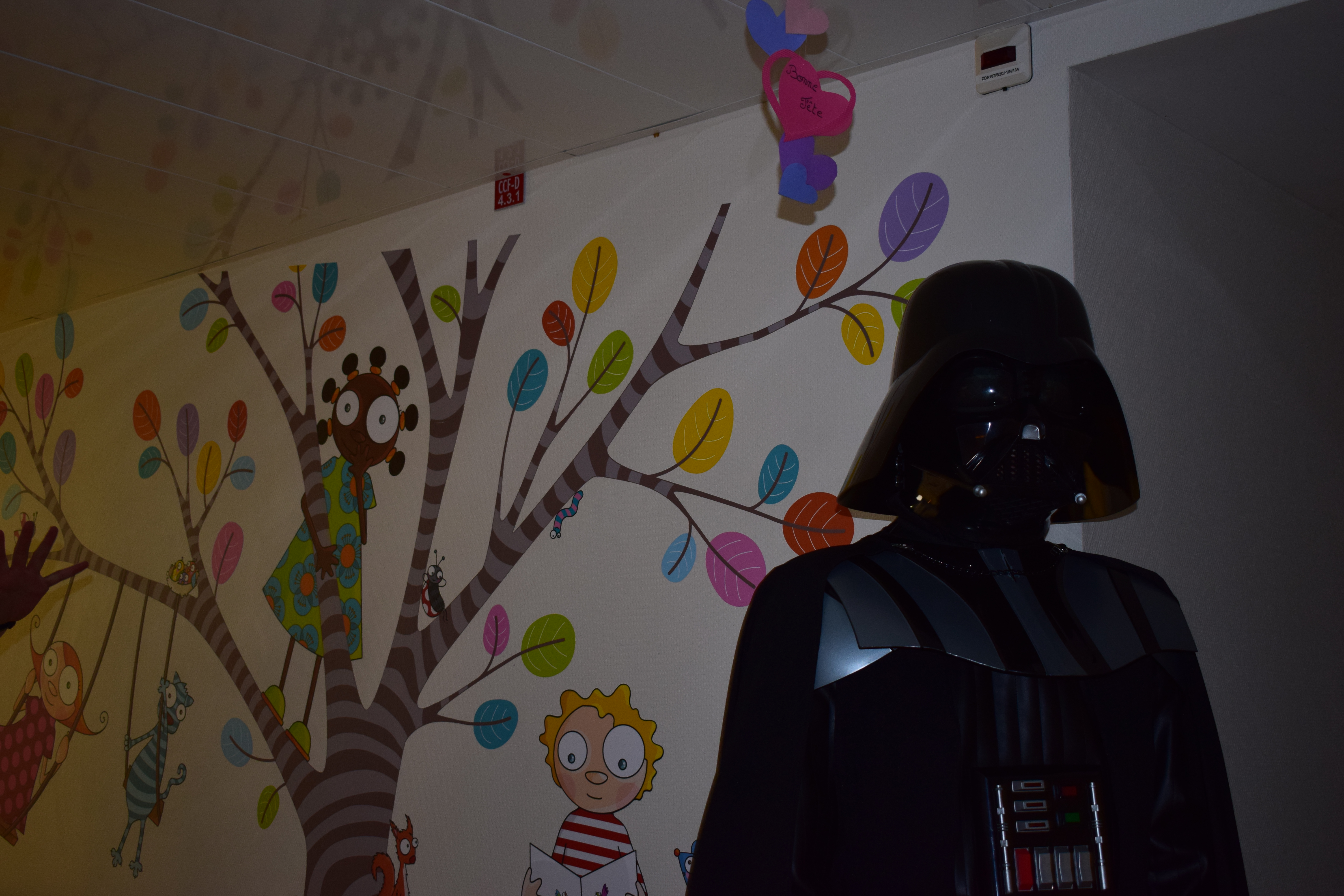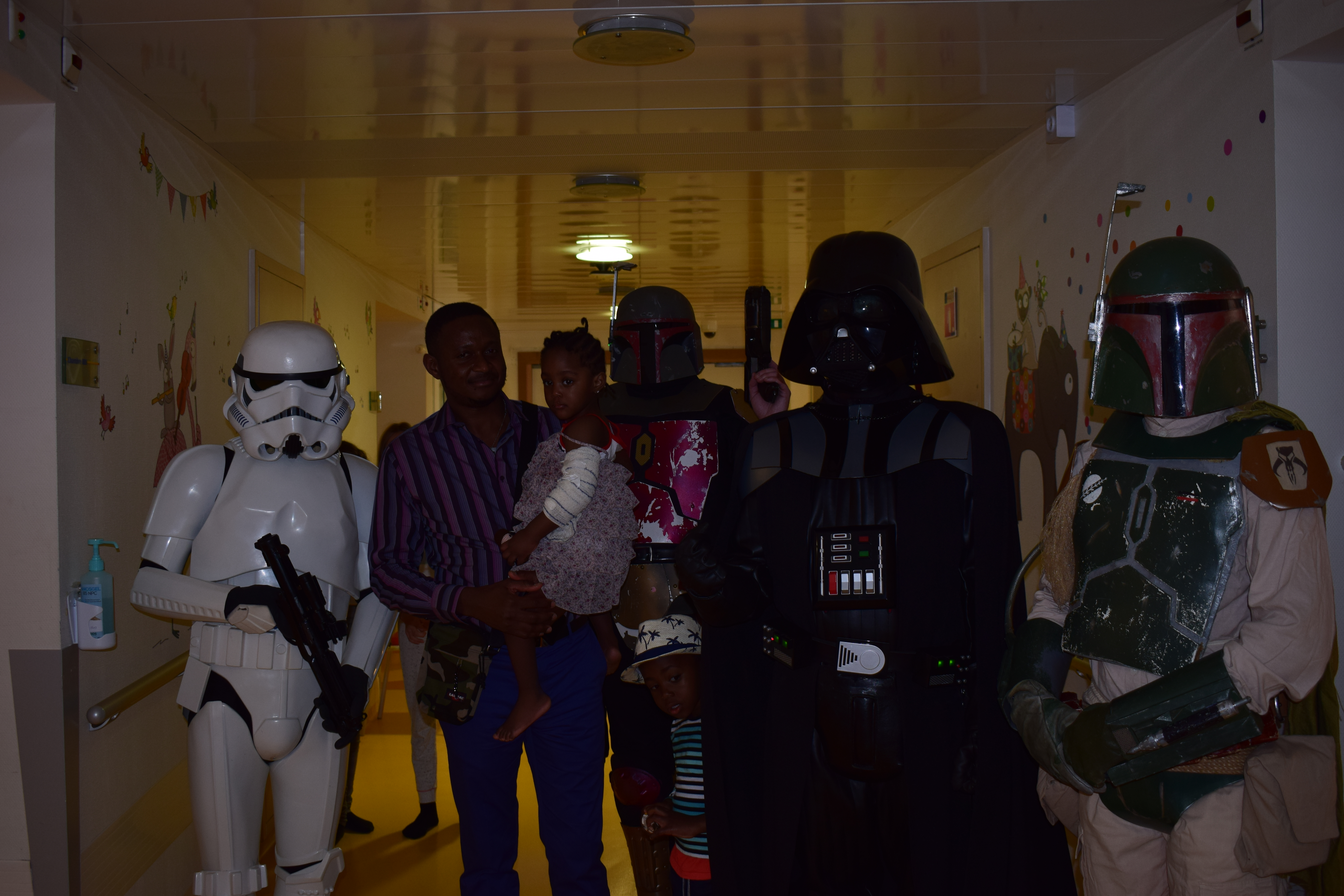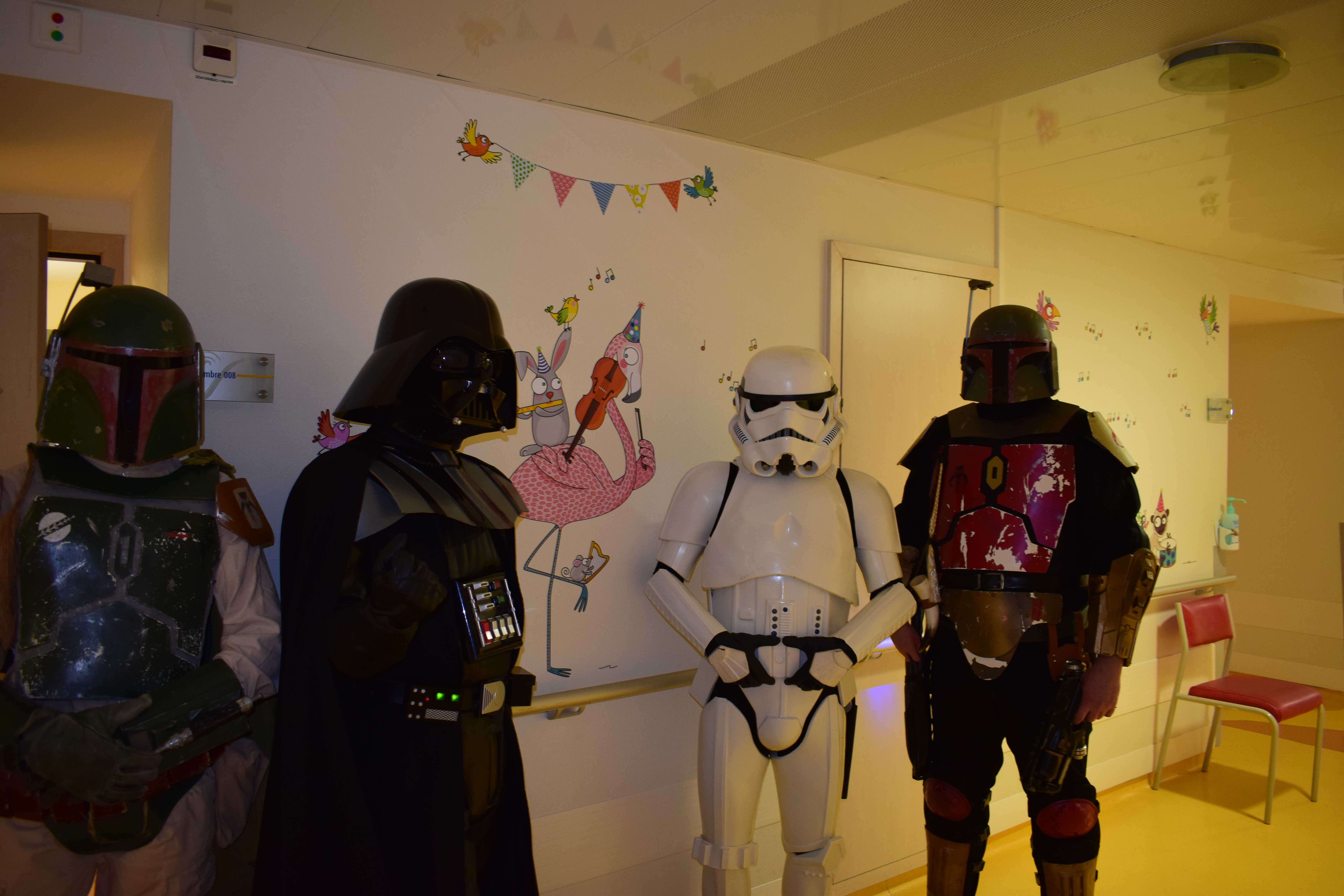 Comme vous le savez, notre action auprès du service pédiatrique de l’hôpital de Vichy ne se limite pas aux animations. Grâce aux dons récoltés lors des diverses actions durant Générations Star Wars et Science-Fiction, nous pouvons aider financièrement le service pour divers projets. Nous avons donc remis lors de cette animation un chèque de 2800€ au service pédiatrie. Les dons des années 2017 et 2018 ont contribué à créer un environnement ludique et coloré, composé d’animaux et de personnages aux grands yeux ronds afin de rendre chaleureux le service pédiatrie pour les petits comme pour les grands. Pour vous donner une idée du résultat, direction les photos ci-dessous ou le site de Série Golo qui a réalisé les décorations qui sont désormais dans les couloirs et chambres du service.