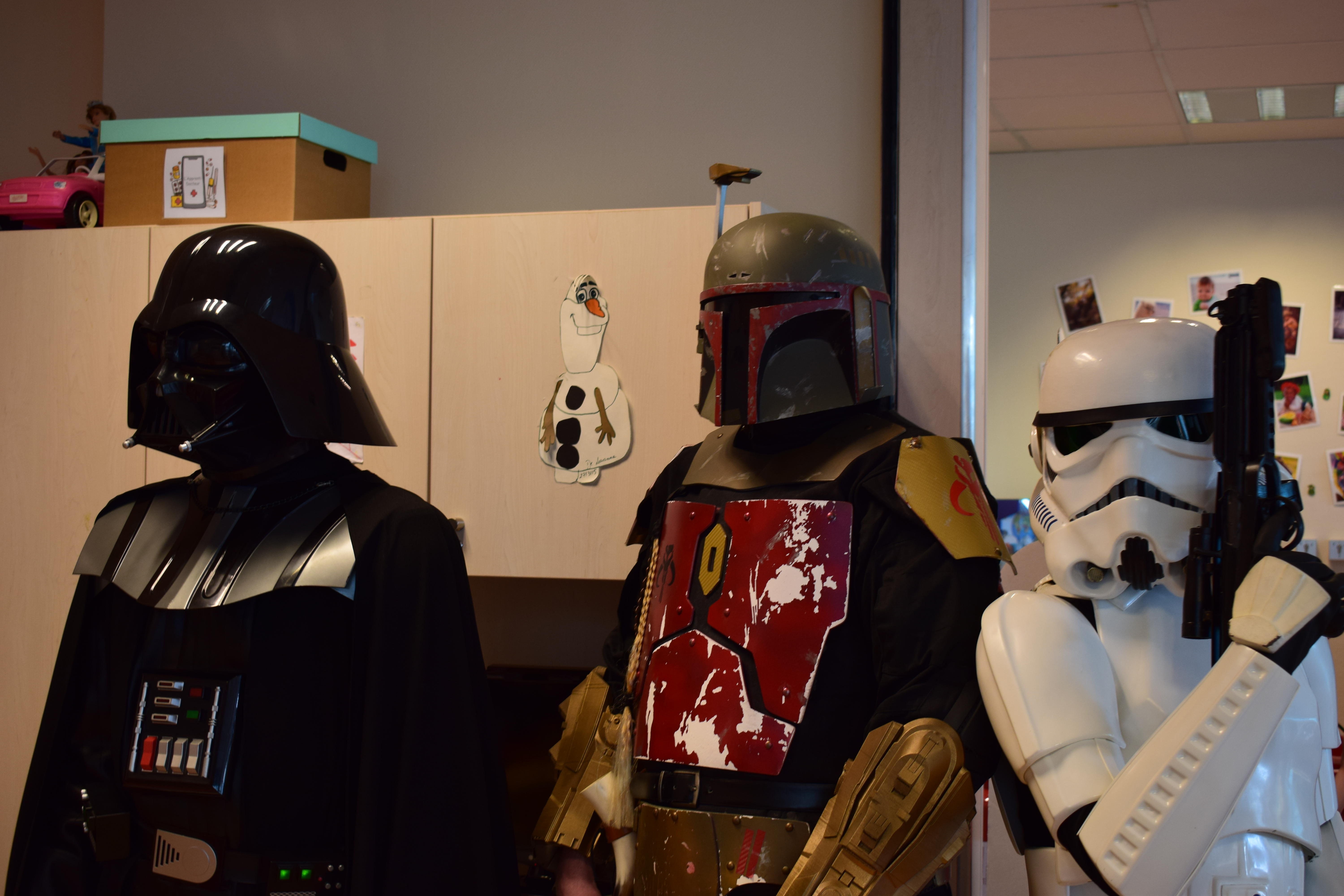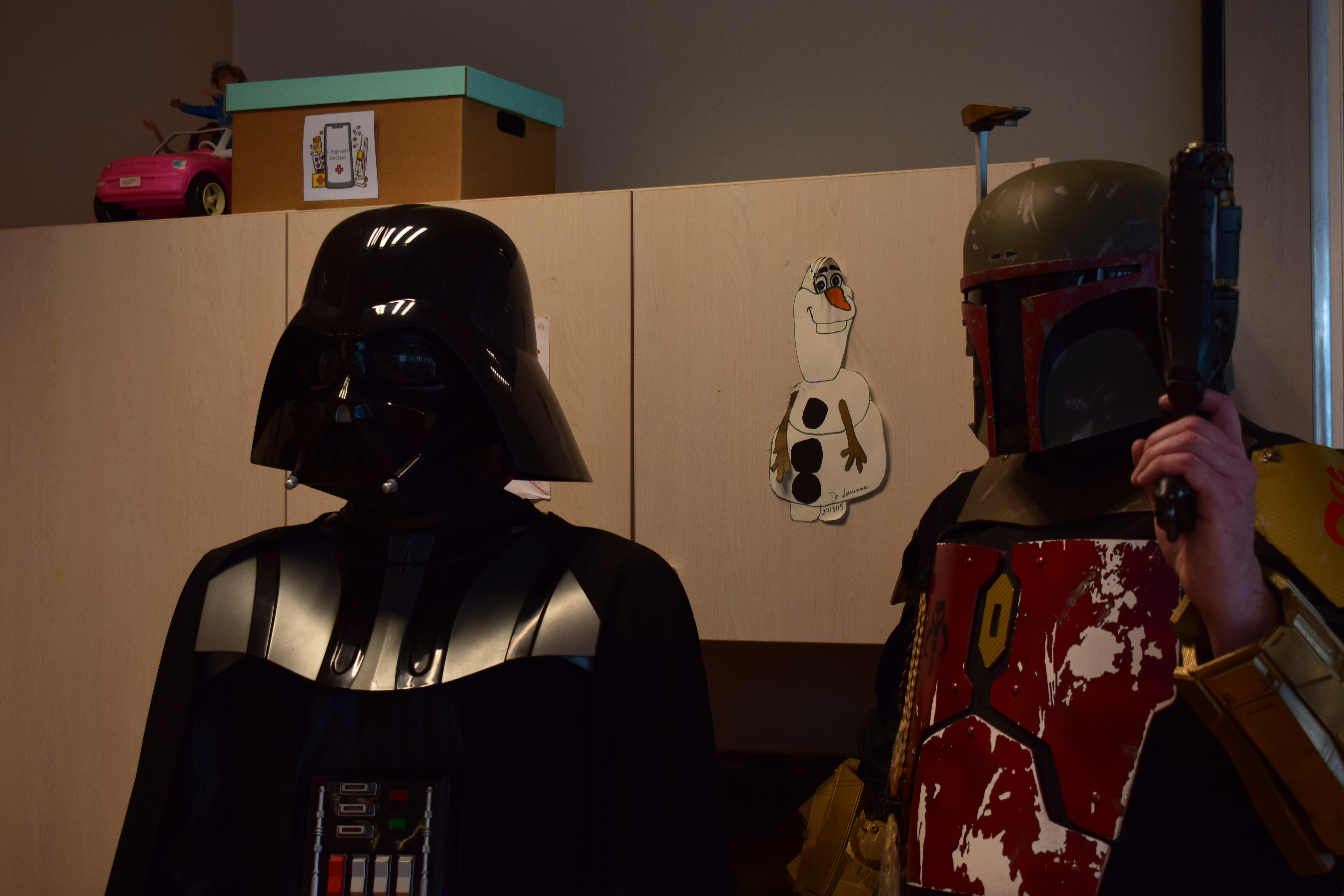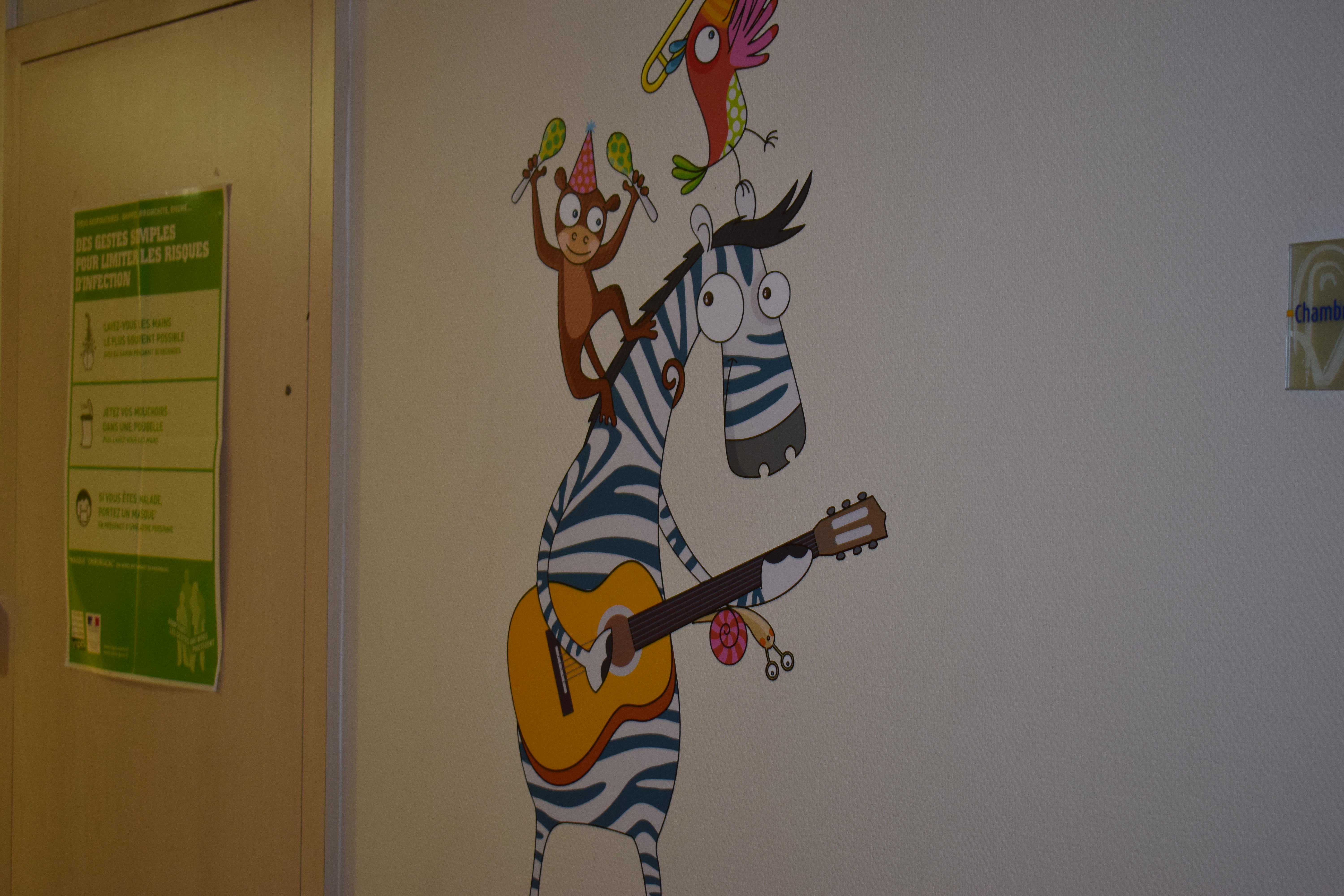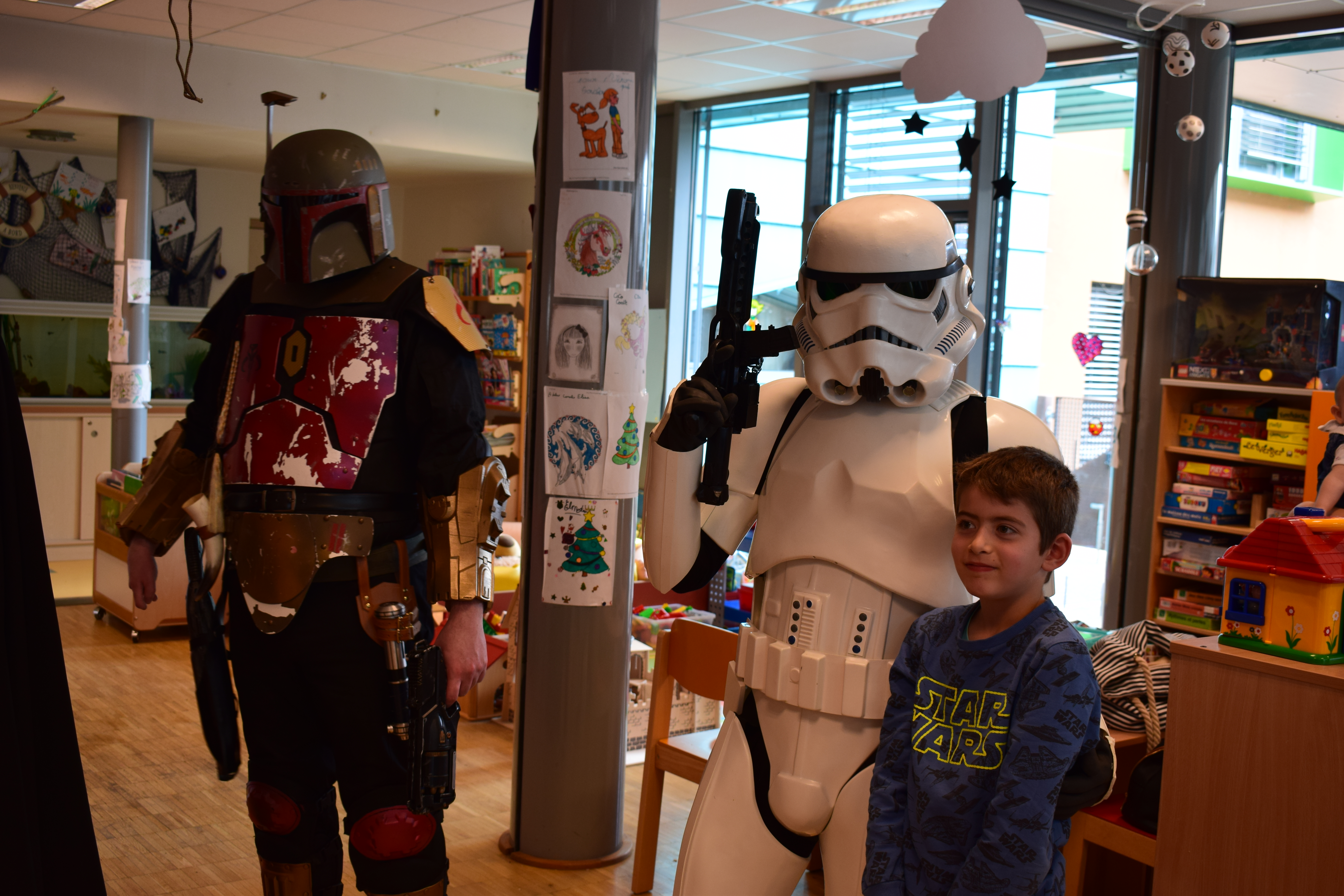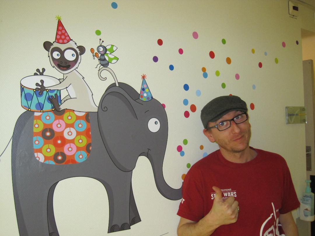 Comme vous le savez, notre action auprès du service pédiatrique de l’hôpital de Vichy ne se limite pas aux animations. Grâce aux dons récoltés lors des diverses actions durant Générations Star Wars et Science-Fiction, nous pouvons aider financièrement le service pour divers projets. Nous avons donc remis lors de cette animation un chèque de 2800€ au service pédiatrie. Les dons des années 2017 et 2018 ont contribué à créer un environnement ludique et coloré, composé d’animaux et de personnages aux grands yeux ronds afin de rendre chaleureux le service pédiatrie pour les petits comme pour les grands. Pour vous donner une idée du résultat, direction les photos ci-dessous ou le site de Série Golo qui a réalisé les décorations qui sont désormais dans les couloirs et chambres du service.