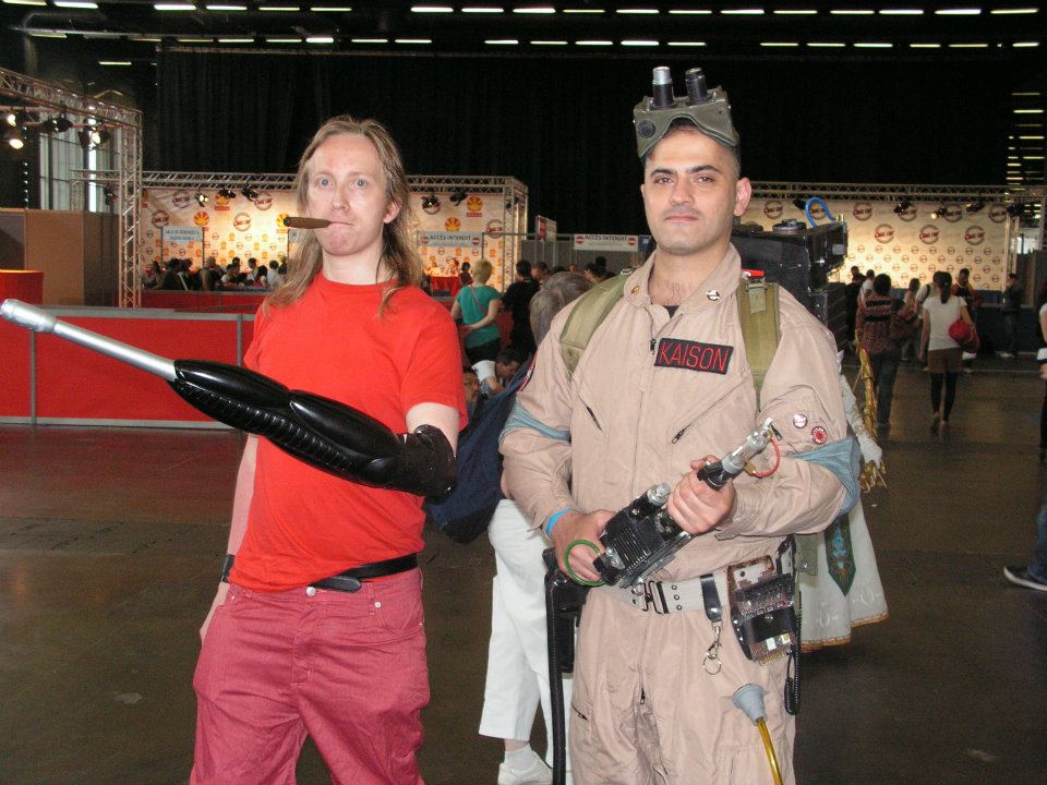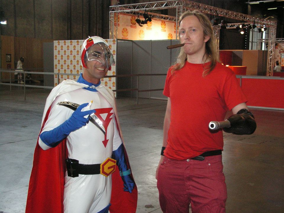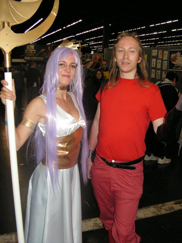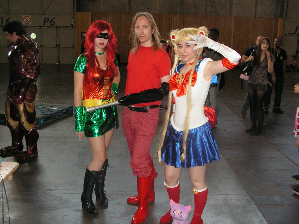 Dès 8h40, Salime, Céline, Phil Reb et Sébastien étaient sur place au Japan Expo, dans l’impressionnante file d’attente menant à l’événement. A 10h00, les portes étaient ouvertes au public. Et là, l’univers du manga et du pays du Soleil Levant leur ouvrait ses portes avec ses exposants et ses vendeurs. Le manga « moderne » était à l’honneur avec des pièces comme un géant Kyubi de Naruto. Les héros un peu plus anciens étaient aussi présents avec une mini expo avec le Dragon Ball Kinect où étaient présents Goke et Picolo de DBZ en figurines grandeur nature. Les cosplayers manga étaient avant tout des personnages de Bleach, Naruto et Black Buttler. Cependant, certains cosplayers avait des costumes de personnages de manga devenus des classiques : Mark de la Bataille des Planètes (Gatchaman), Athéna/ Saori de Saint Seiya (Les Chevaliers du Zodiaque) ou encore quelques Sailors soldiers de Sailormoon. Sébastien rejoignit cette troupe avec son costume de Cobra.