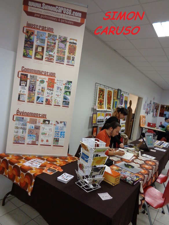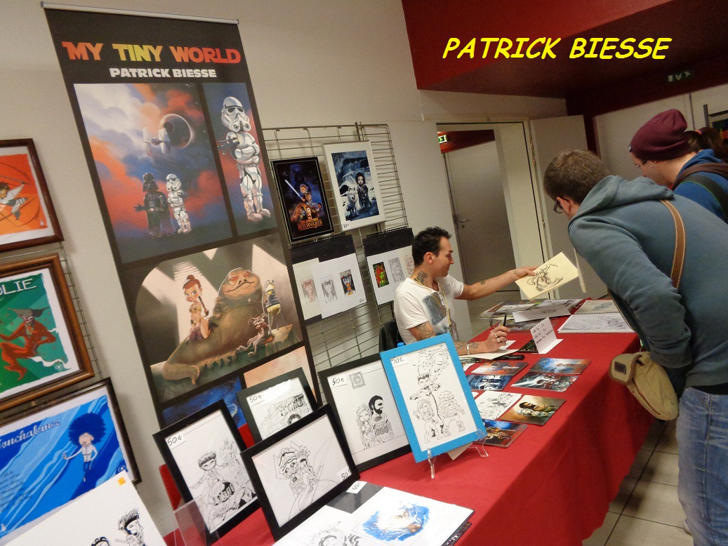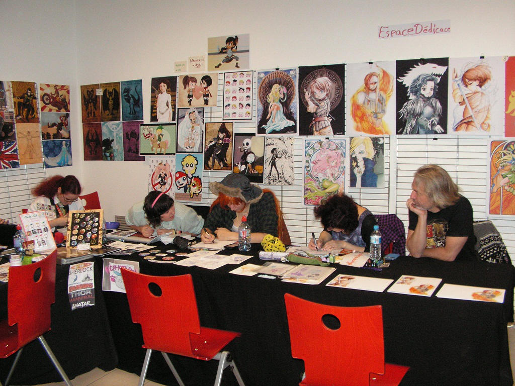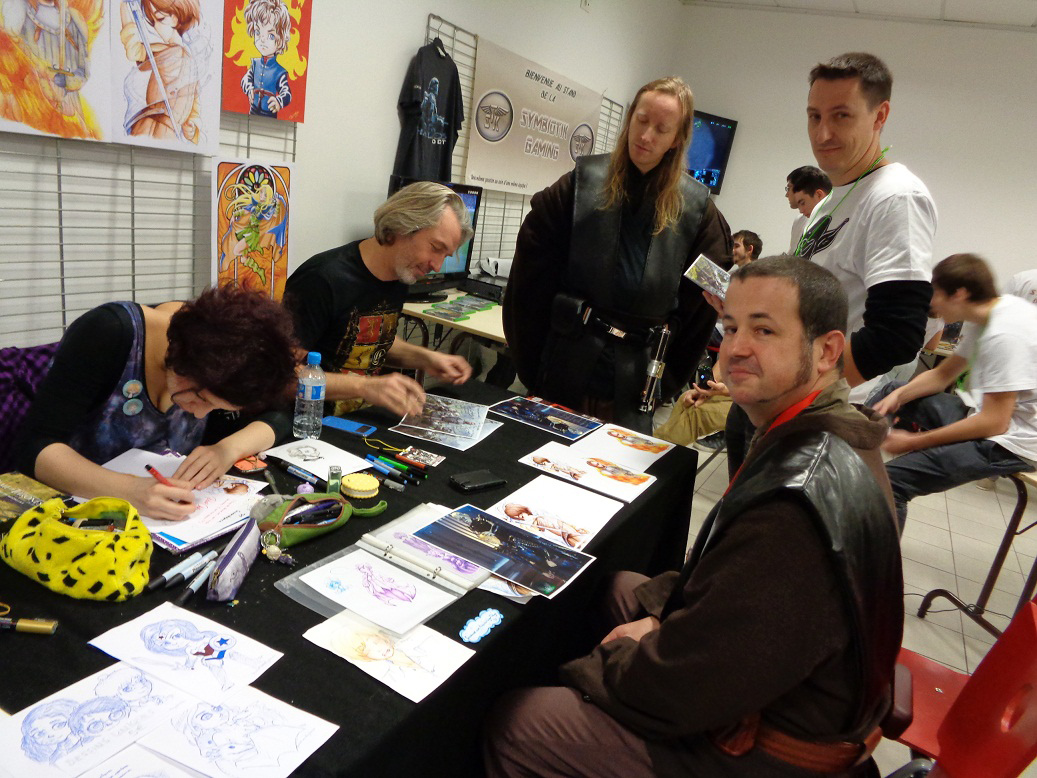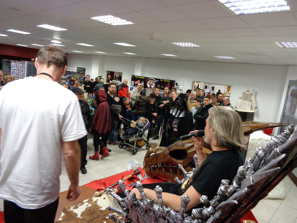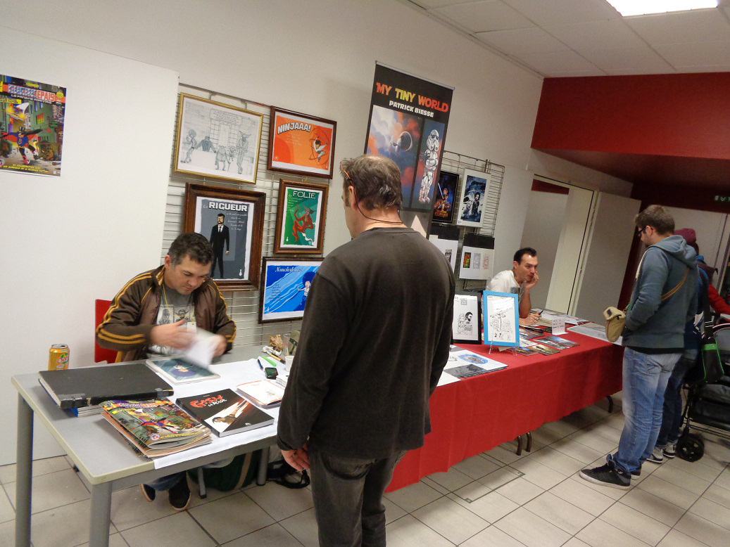 Quelques boutiques étaient aussi présentes et permettaient tout de même à chacun de ramener un petit souvenir… ou un plus gros ! La présence de librairies étaient parfaite en cette période de sortie de bien beaux ouvrages, notamment chez Akiléos et Huginn & Munnin. Le périodique « Guère Epais » d’un groupe de passionnés également roannais avait même créé pour l’occasion un numéro spécial SF. Les « ambassadeurs roannais du 9ième Art » étaient bien évidemment présents, Patrick Biesse « Tiny World », Simon Caruso, Christophe Hénin, Olivier Paire « Petelus »,… de nombreux visiteurs ne s’y étaient pas trompé et sont donc aussi repartis avec tirages et dédicaces sous le bras bien évidement.