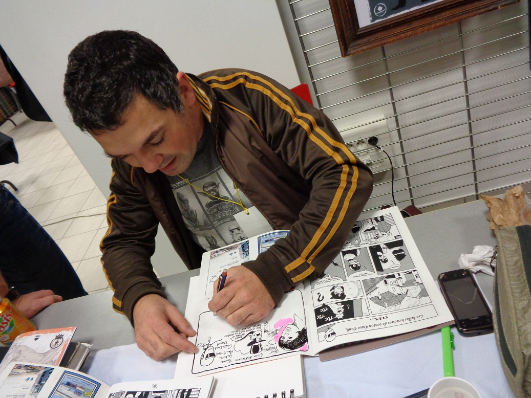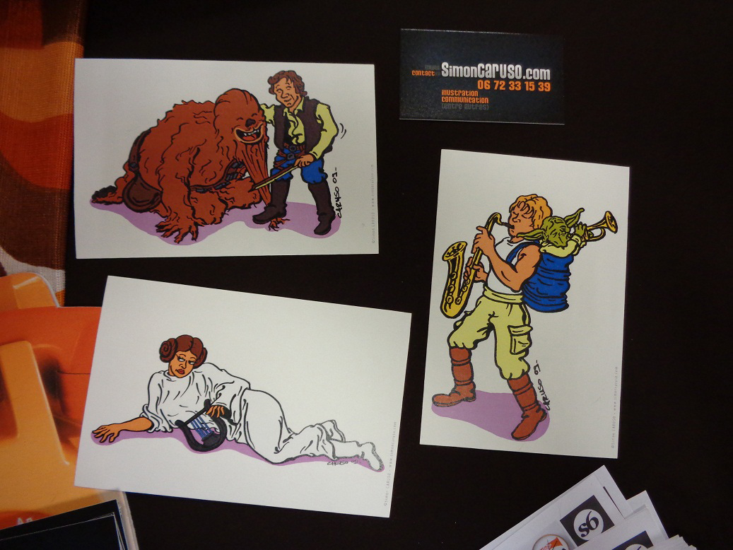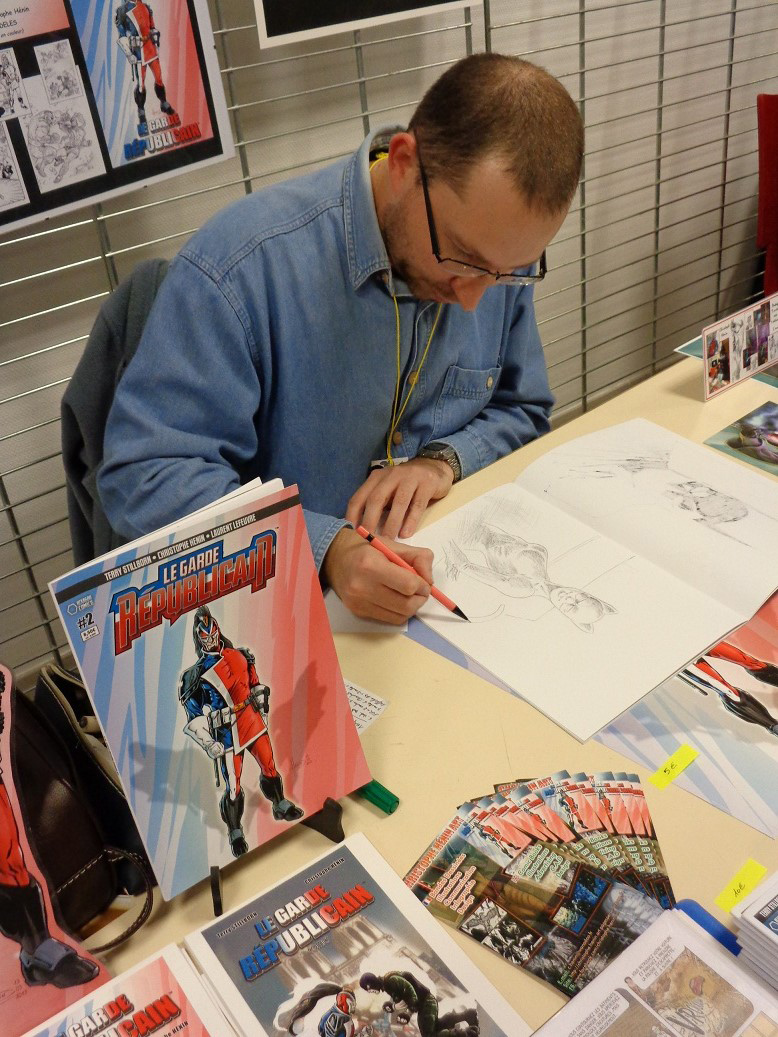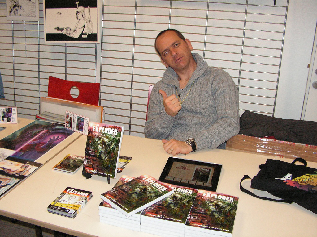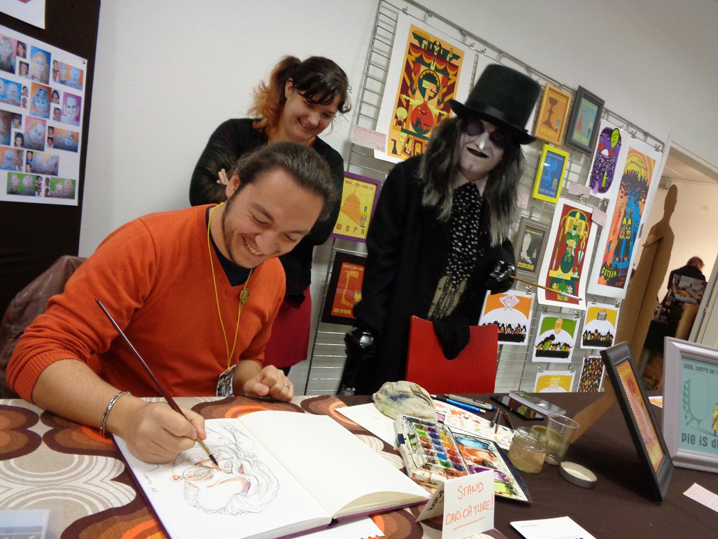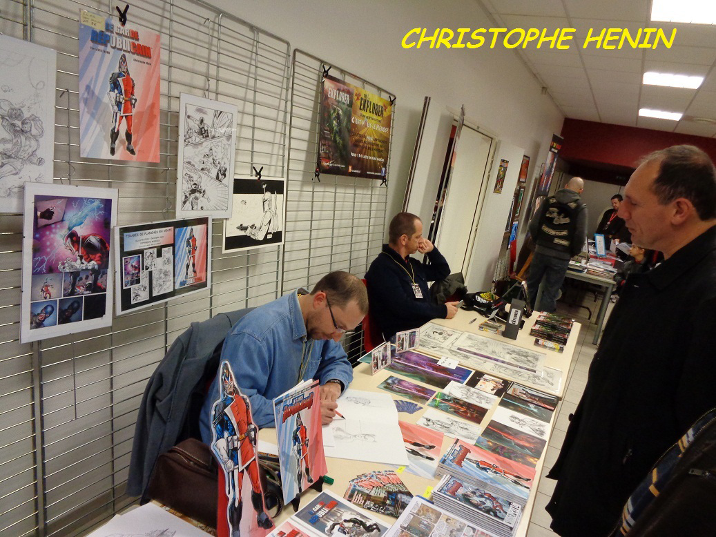 Quelques boutiques étaient aussi présentes et permettaient tout de même à chacun de ramener un petit souvenir… ou un plus gros ! La présence de librairies étaient parfaite en cette période de sortie de bien beaux ouvrages, notamment chez Akiléos et Huginn & Munnin. Le périodique « Guère Epais » d’un groupe de passionnés également roannais avait même créé pour l’occasion un numéro spécial SF. Les « ambassadeurs roannais du 9ième Art » étaient bien évidemment présents, Patrick Biesse « Tiny World », Simon Caruso, Christophe Hénin, Olivier Paire « Petelus »,… de nombreux visiteurs ne s’y étaient pas trompé et sont donc aussi repartis avec tirages et dédicaces sous le bras bien évidement.