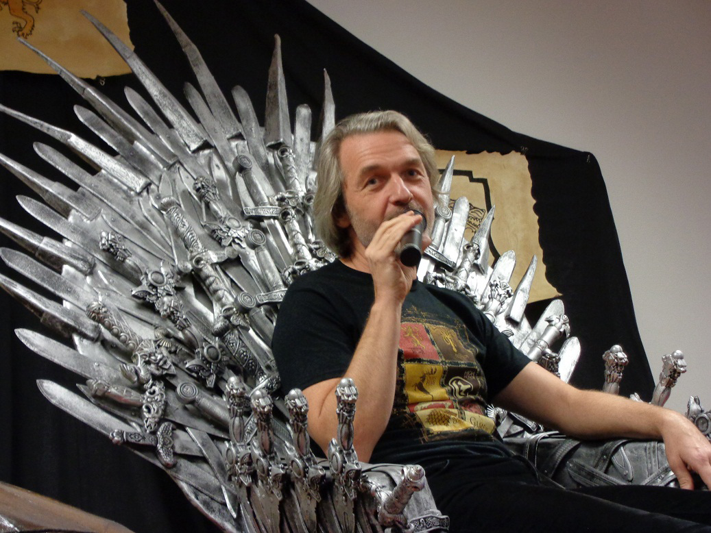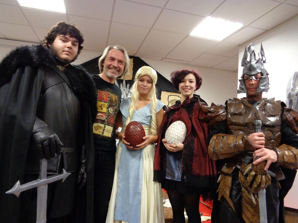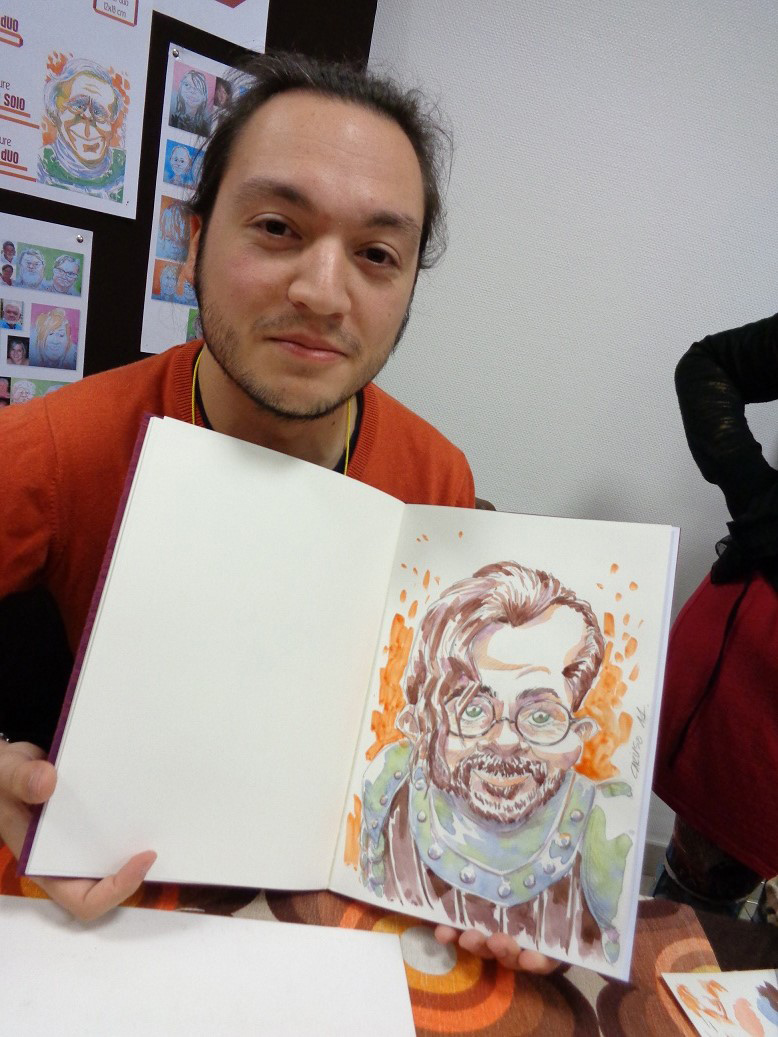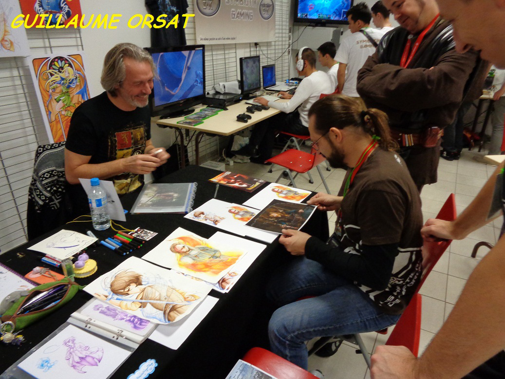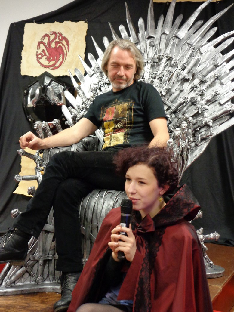 N  (1)Et puis, pour nombre de passionnés de Game Of Thrones, cette nouvelle édition était surtout l’occasion de rencontrer les acteurs de doublage français d’Arya, Alice Orsat, et du limier Sandor Clegane, Guillaume Orsat. Et non, pas d’erreur de frappe Guillaume et Alice sont bien père et fille, une relation qui créée un jeu d’acteur parfois amusant lors de leur doublage, comme ils ont pu l’expliquer longuement aux visiteurs lors de la conférence. Ces 2 artistes totalement adorables étaient d’une grande disponibilité à leur stand pour des échanges, des dédicaces et photos gratuites, vraiment une très belle rencontre à faire. En plus Alice est une  dessinatrice de talent, une occasion à saisir d’avoir un tirage de l’illustration exclusive d’Arya et du limier, illustration réalisée par Alice et signé par cet adorable duo, vraiment un superbe souvenir pour ceux qui l’on vécut !