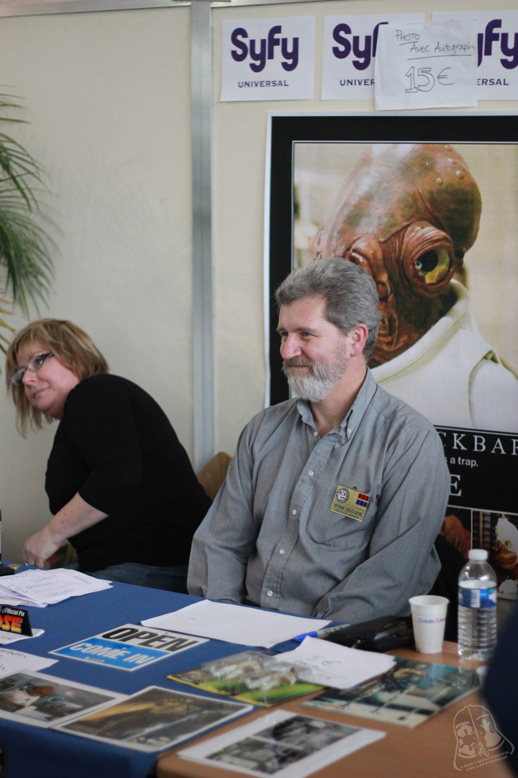 Et puisque l’on parle des invités, commençons directement par parler des 2 « guests » présents tout au long du week end à savoir Dirk Benedict et Tim Rose. Peut être que ces noms ne vous disent rien comme ça, mais si je vous dis que le premier n’est, ni plus ni moins, que l’interprète du célèbre Futé dans la série des années 70, l’Agence Tout Risque, et que le second est celui qui donna vie à plusieurs personnages de Star Wars et notamment celui de l’emblématique Amiral Ackbar, cela devrait vous éclairer un petit peu.