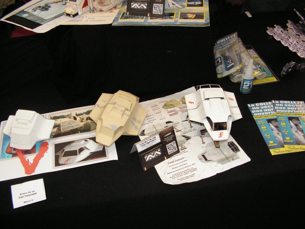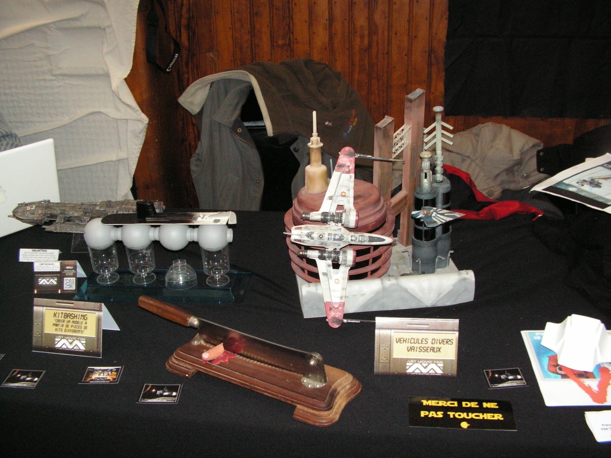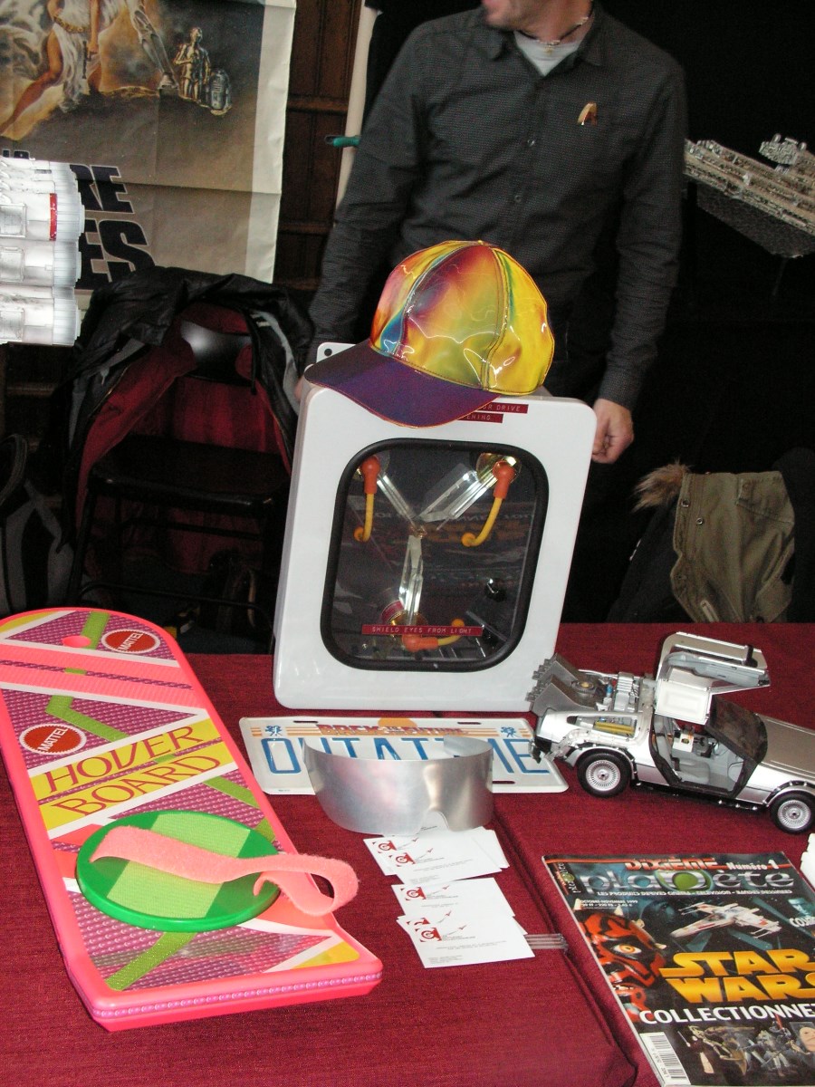 En effet, outre l’exposition des Héritiers présentant divers proders sur la saga galactique que nous aimons tant, dont un superbe ewok grandeur nature fait par Emmanuel, il y avait une belle exposition d’ objets issus de Retour vers le futur à l’occasion du trentième anniversaire de la saga de Robert Zemeckis. Le même exposant présentait également des maquettes de Battlestar Galactica.