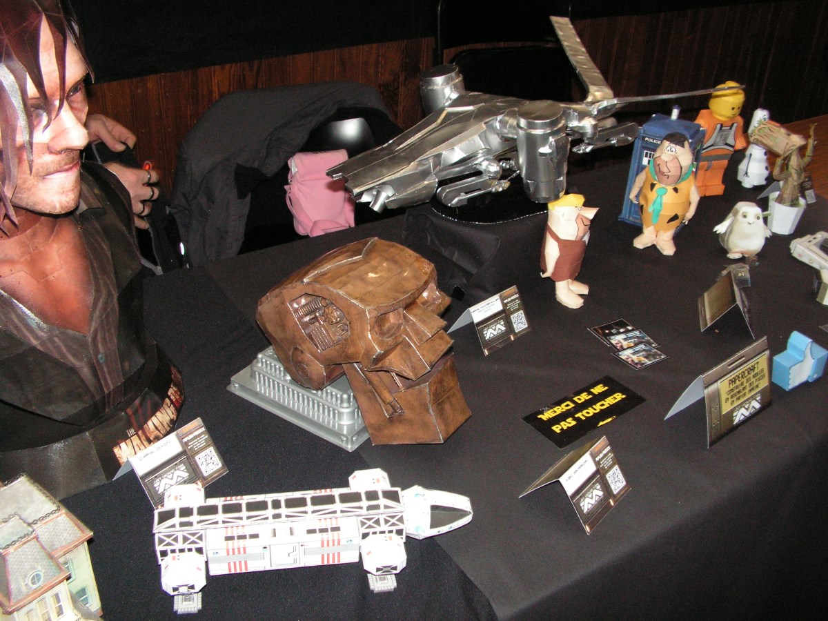 Les associations Art Movie Fan et Modèles Ciné Créations offraient à nos yeux de nombreuses figurines et modèles réduits de films et séries télé (Living Dead, Avatar, Gardiens de la la Galaxie, V, et bien d’autres). Sur le stand suivant, Star Wars était encore à l’honneur avec un diorama Tatooine.