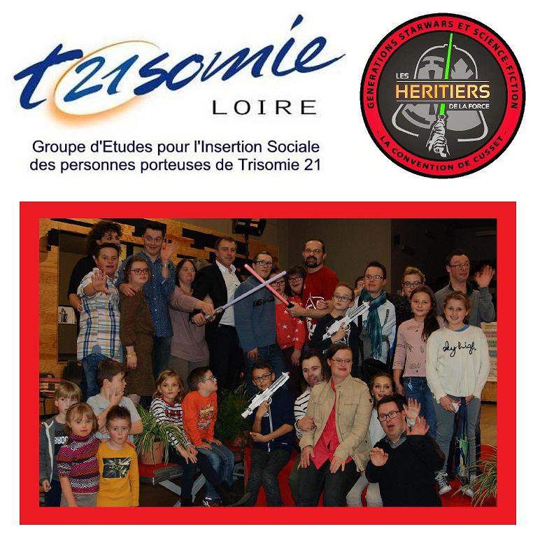 Depuis plusieurs mois, nous souhaitions apporter un soutien à une seconde structure, puisqu’en effet les fonds collectés sont de plus en plus importants : 5 010 € collectés lors de Générations Star Wars & Science-Fiction 2016. Ainsi, nous sommes très heureux d’annoncer que nos actions viendront dorénavant soutenir également l’association TRISOMIE 21 – LOIRE !
