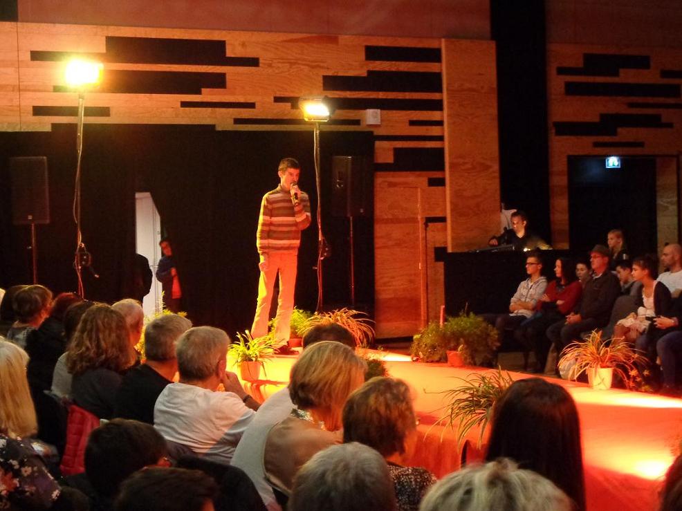 C’est en effet le hasard, saupoudré d’un soupçon d’« idées derrière la tête », qui nous a conduits à être présents le 20 novembre dernier à la Journée Nationale de la Trisomie 21 organisée par la section « 42 Loire » de l’association « TRISOMIE 21 France ». Cet évènement était articulé autour d’un défilé de mode réalisé par les enfants et jeunes adultes trisomiques eux-mêmes, et ceci avec le soutien de boutiques de vêtements partenaires depuis plusieurs années. Un jeune autiste, d’un naturel très réservé, nous a chanté plusieurs chansons et quel plaisir de le voir autant métamorphosé sur scène, lui qui devenait comme par magie un interprète de grand talent mû par une énergie superbe et tellement communicative ! Le handicap n’est pas une fatalité qu’il faut voir comme une croix permanente à porter, la vie reste la vie, la joie reste présente et le partage de moments forts comme cette journée apporte tant à tous qu’il ne faut pas s’en priver !