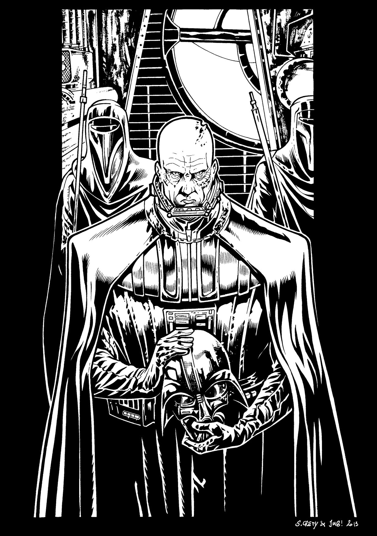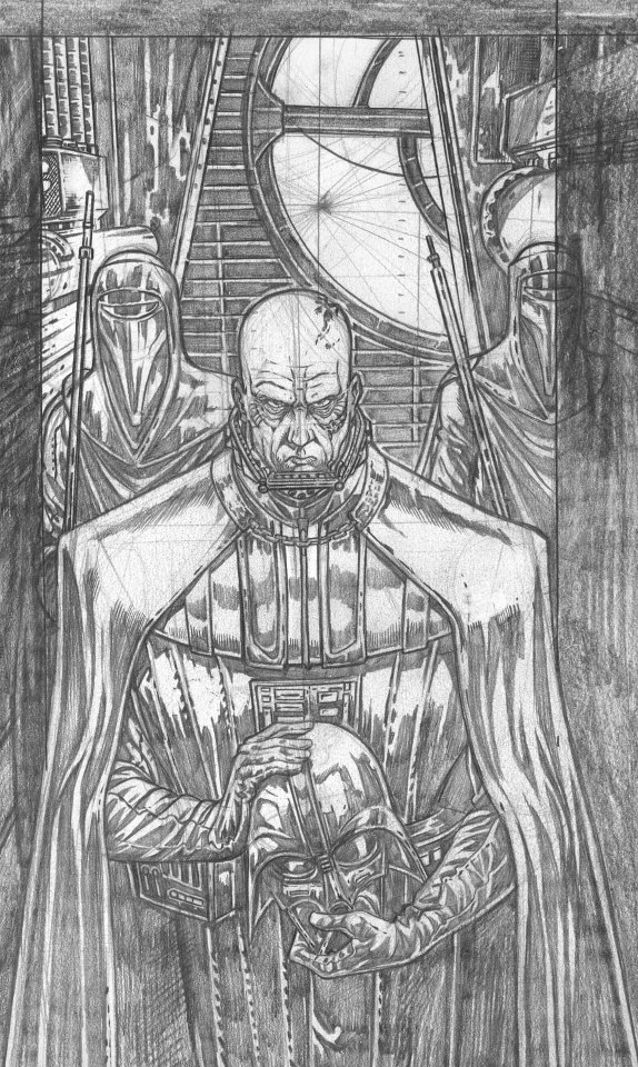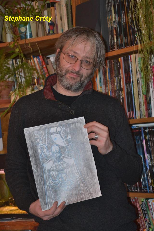La première a été réalisée par Stéphane Créty, dessinateur français au nombre d’albums impressionnant et invité de Générations SW en 2012. Evidemment, c’est autour du « thème imposé », à savoir Dark Vador, que Stéphane a tenu à offrir un « crayonné » totalement inédit d’un niveau de détail extraordinaire !